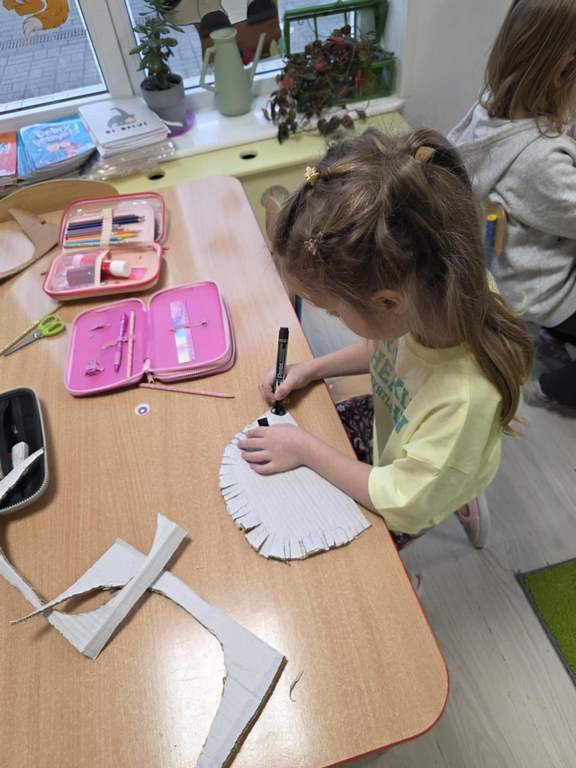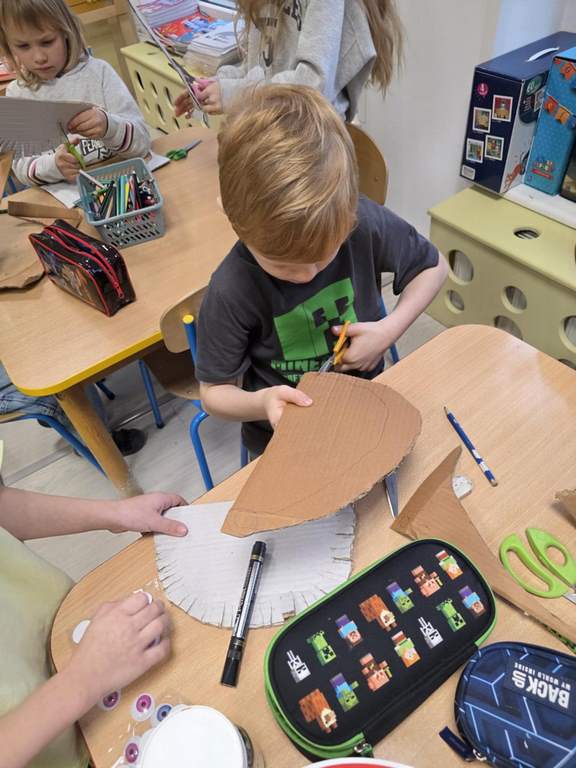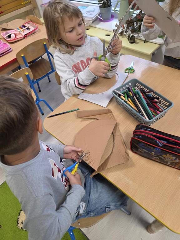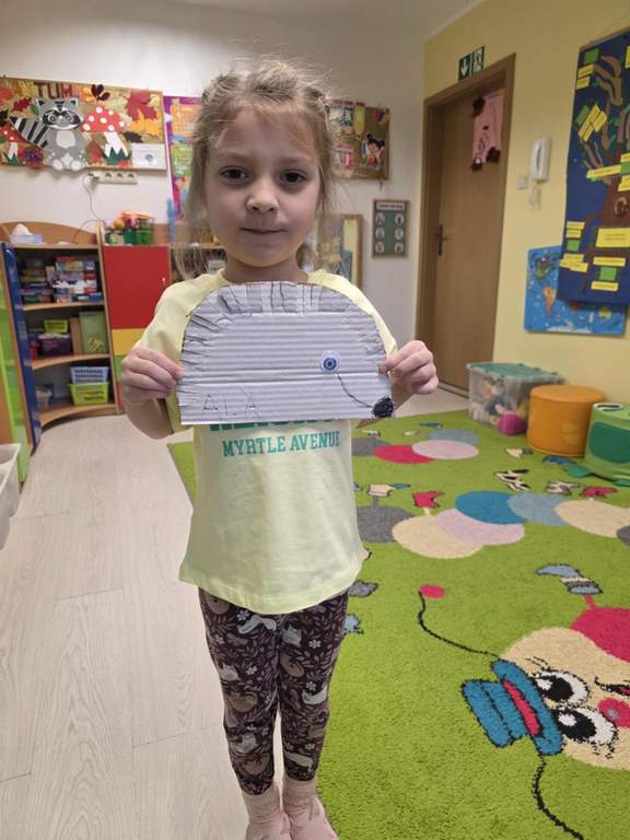 Kiedy Pani Emilka przyniesie tekturę i pokaże wzór… dzieje sie magia. Bierzemy się do pracy i wtedy dzieje sie magia… powstają prawdziwe cudeńka – piękne jeże.