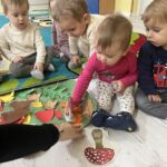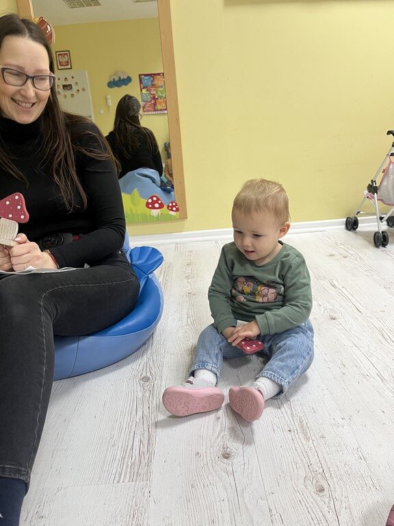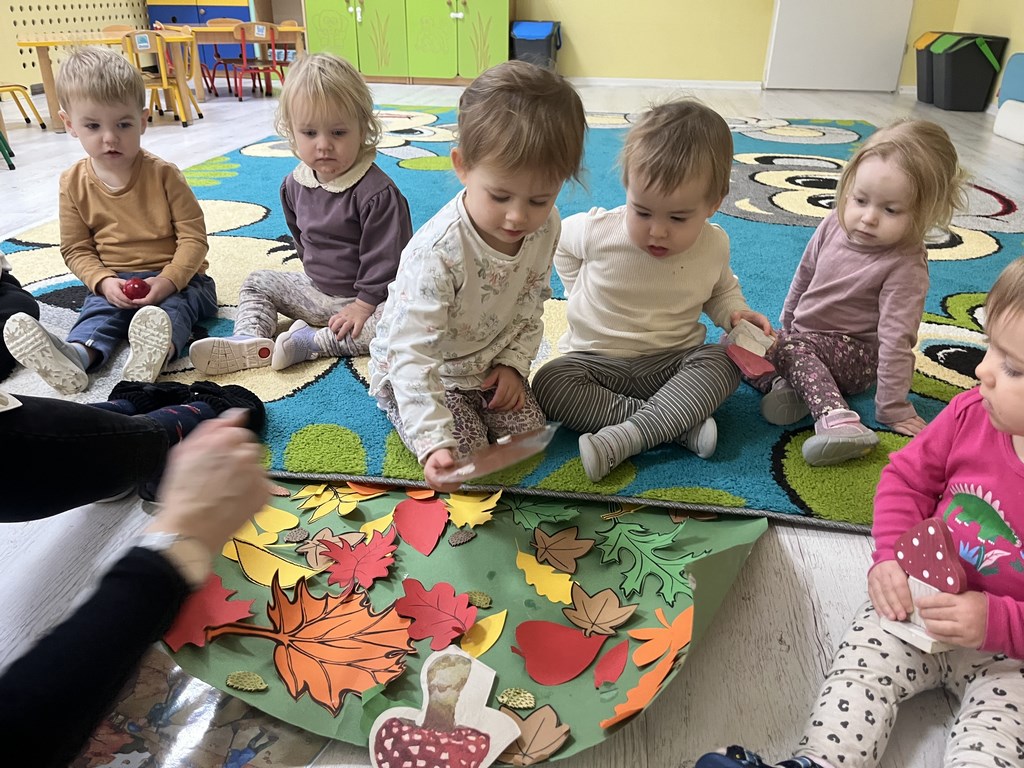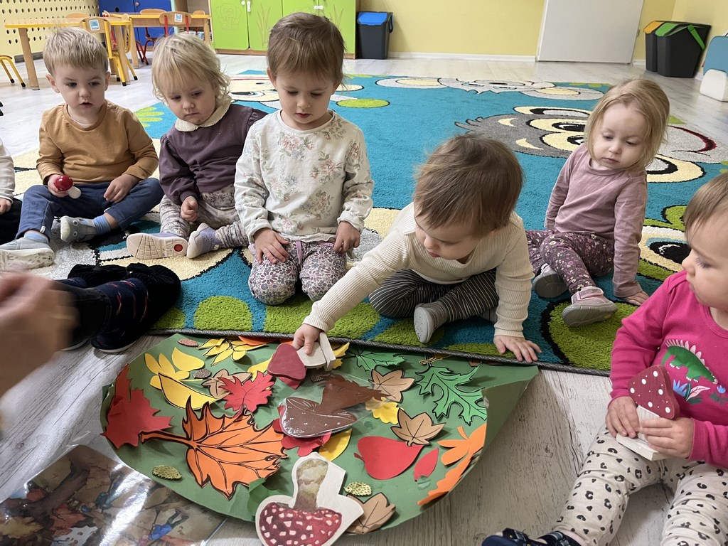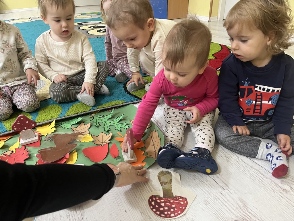 „Grzybek tu,grzybek tam,a ja wszystkie grzybki znam…”takim wierszykiem Bumblebee zapoznały się z leśnymi grzybkami:maślaczek,rydz, borowik i kolorowym ładnym lecz niejadalnym muchomorem. Zajęcia integrowały grupę.