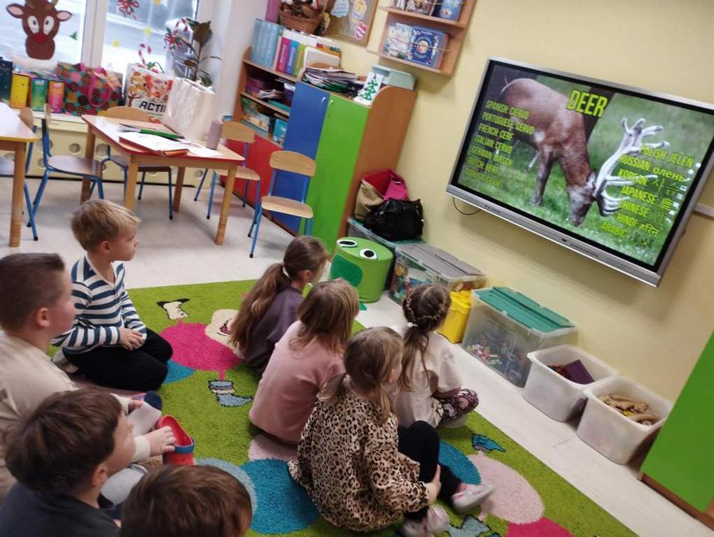 W tym tygodniu na zajęciach z języka angielskiego w grupie Pszczółek mieliśmy tydzień związany z nadchodzącą Zimą. Rozmawialiśmy o zwierzętach zamieszkujących lasy w Polsce i na świecie oraz o tym, w jaki sposób przygotowują się one do zbliżającej się Zimy. Mówiliśmy o pożywieniu zwierząt, rozpoznawaliśmy ich odgłosy i ślady oraz dowiedzieliśmy się, które z leśnych zwierząt zapadają w sen zimowy.