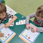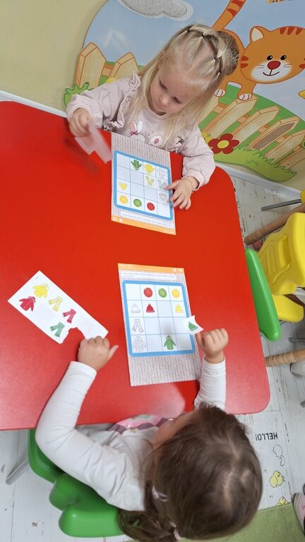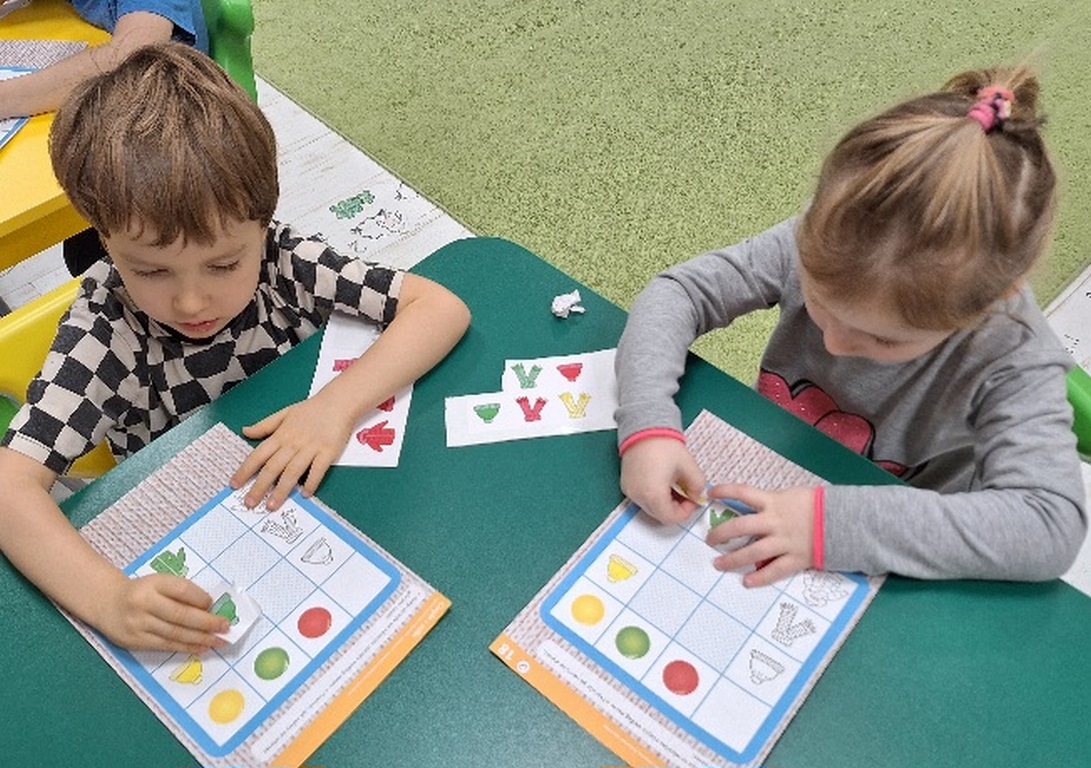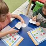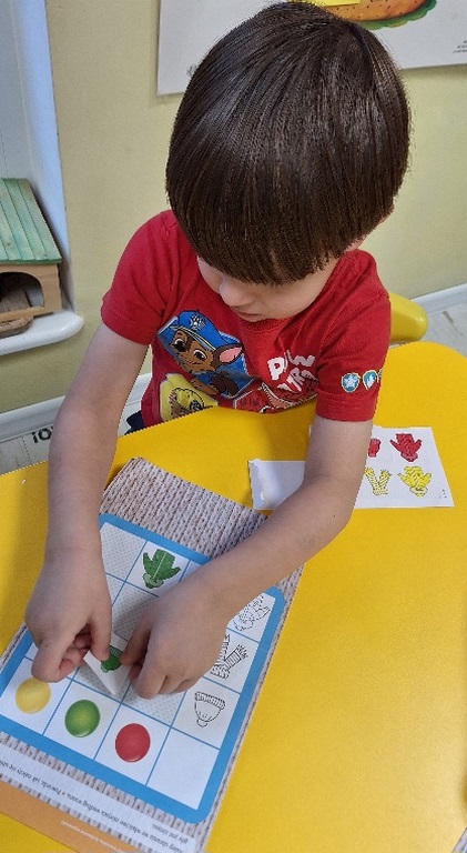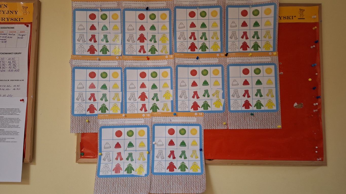 Dzieci samodzielnie dobierają ubrania i przyklejają na odpowiednich miejscach według podanego kodu.