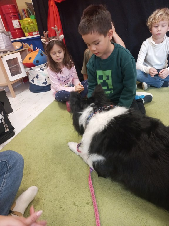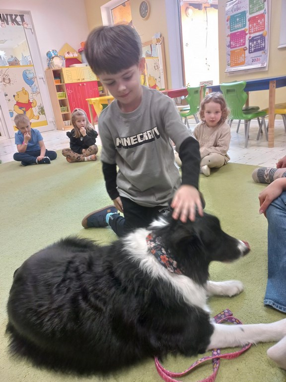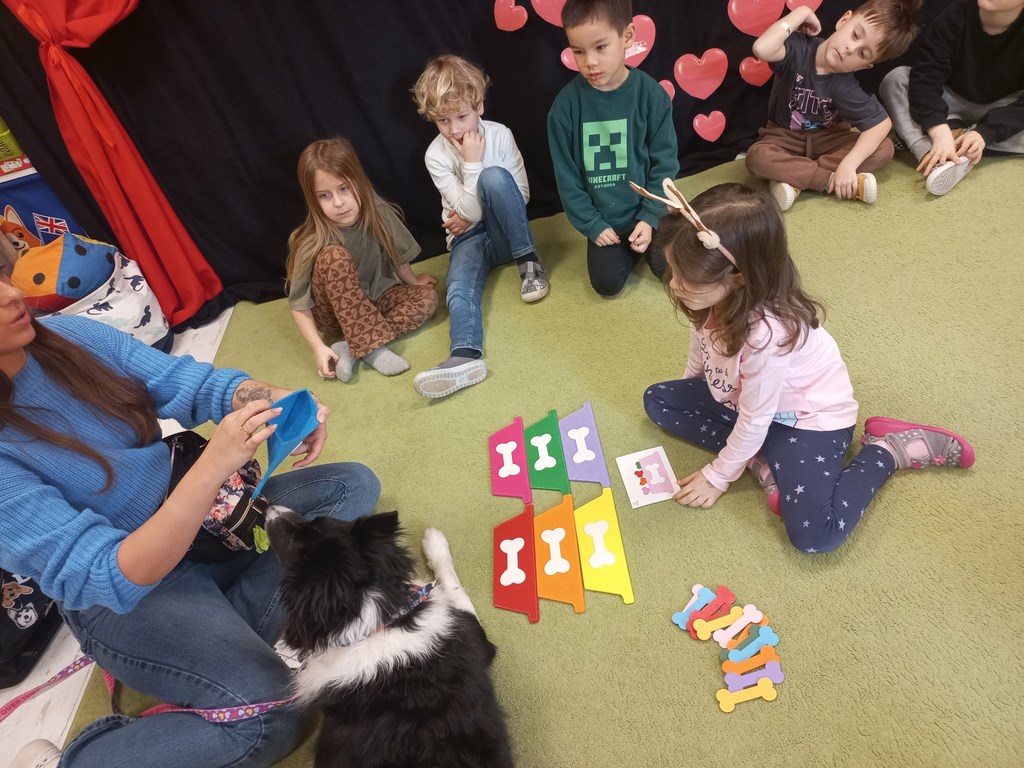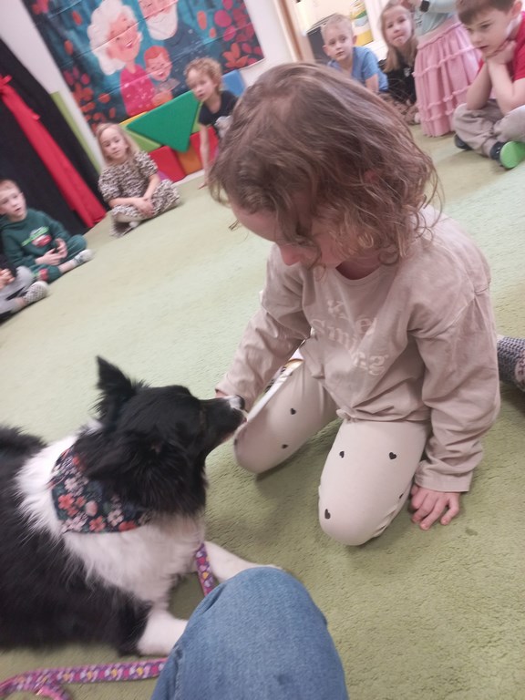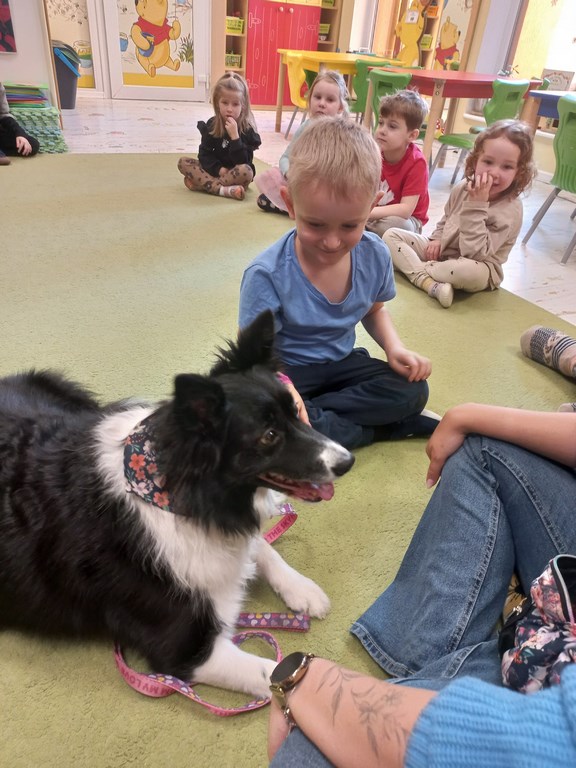 Coco znowu odwiedziła swoje przedszkolaki, dzieci coraz swobodniej podchodzą do pieska oraz wykonują zadania. Ale najlepszą zabawą okazało się odbijanie balona nosem ! Śmiechy dzieci było słychać w całym przedszkolu 😁