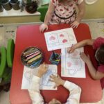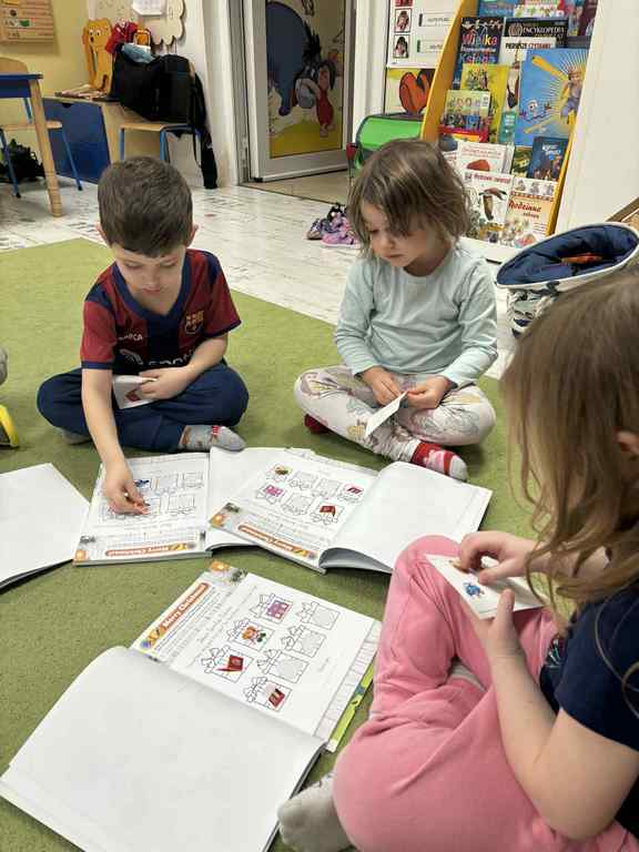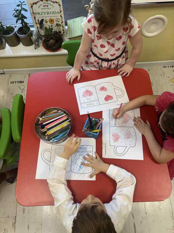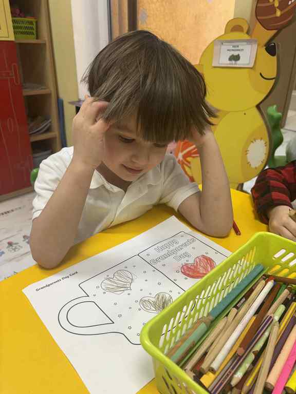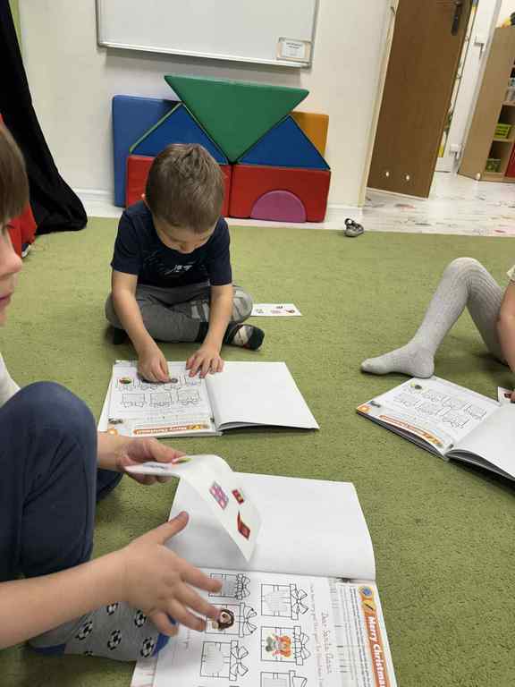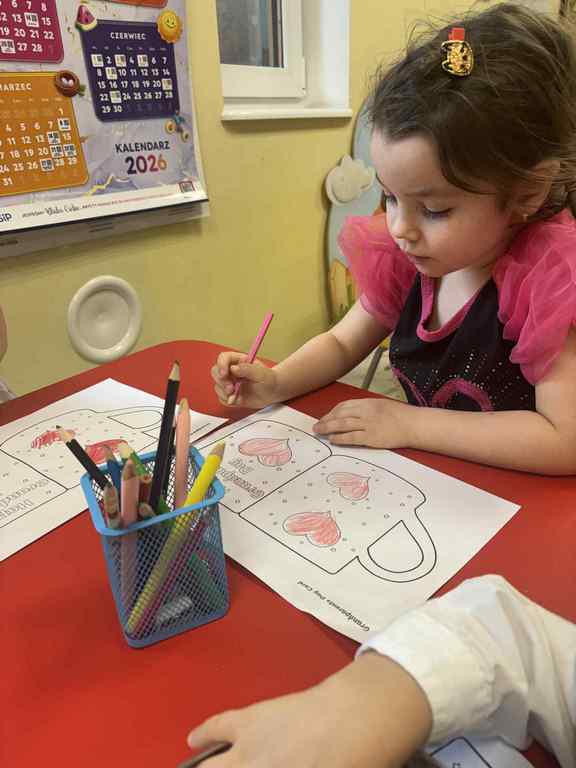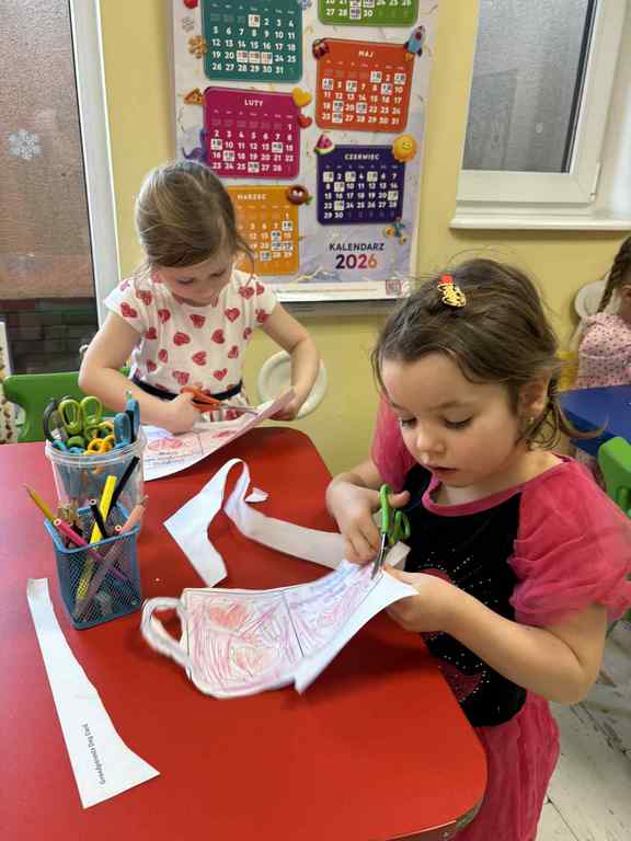 Tygrysy z wielkim zaangażowaniem przygotowywały upominki dla swoich ukochanych Dziadków. Przy klejeniu, wycinaniu i ozdabianiu rozmawiały o zimie – o śniegu, bałwanach, sankach i ciepłej herbacie po spacerze.