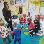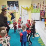 Piątek 13 lutego nie był w naszym przedszkolu pechowy, ponieważ tego dnia odbył się karnawałowy bal przebierańców. Każdy się przebrał za kogo chciał. Mieliśmy zabawy po polsku i angielsku, a później pyszny poczęstunek, za który bardzo dziękujemy rodzicom. Tego dnia także nasz kochany Adaś skończył cztery lata. Życzymy naszemu kochanemu Adasiowi dużo zdrówka, mnóstwa przyjaciół i samych słonecznych dni. A wszystkim odwiedzającym naszą galerię życzymy miłego dnia.