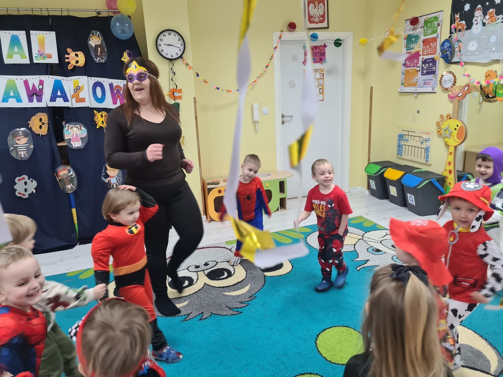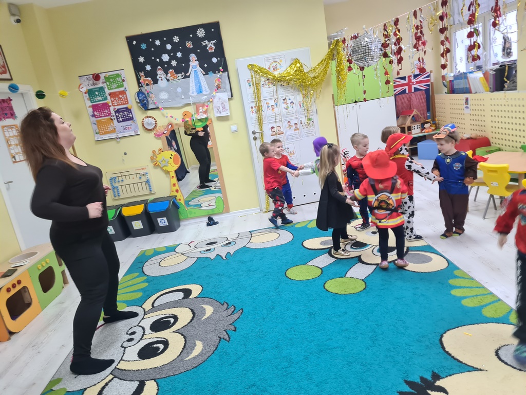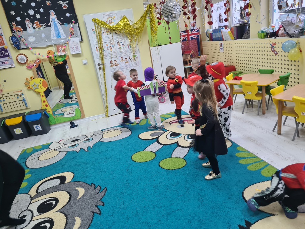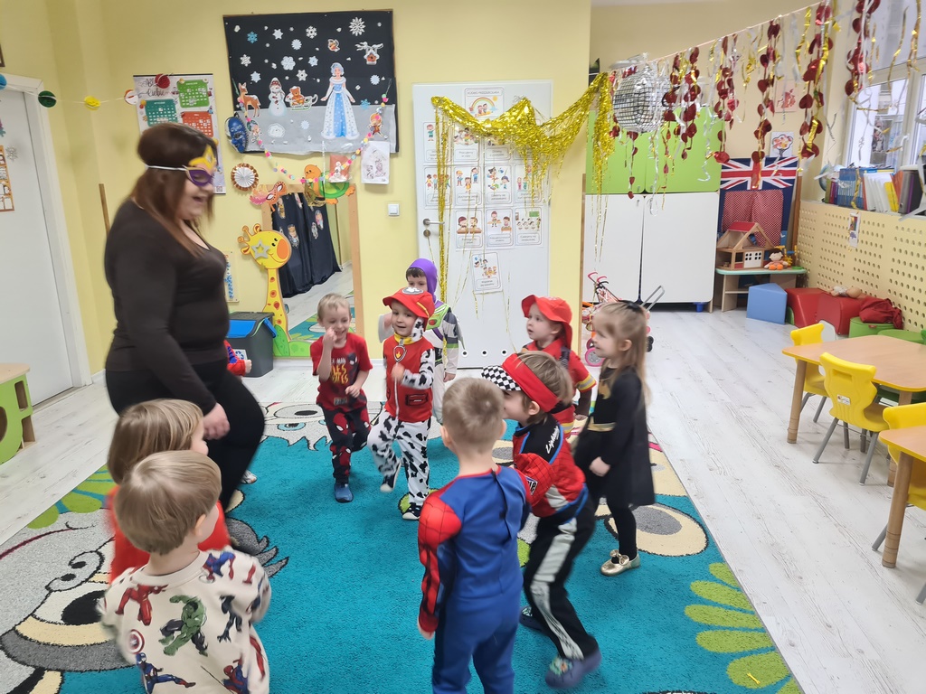 Piątek 13 lutego nie był w naszym przedszkolu pechowy, ponieważ tego dnia odbył się karnawałowy bal przebierańców. Każdy się przebrał za kogo chciał. Mieliśmy zabawy po polsku i angielsku, a później pyszny poczęstunek, za który bardzo dziękujemy rodzicom. Tego dnia także nasz kochany Adaś skończył cztery lata. Życzymy naszemu kochanemu Adasiowi dużo zdrówka, mnóstwa przyjaciół i samych słonecznych dni. A wszystkim odwiedzającym naszą galerię życzymy miłego dnia.