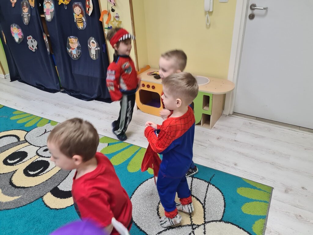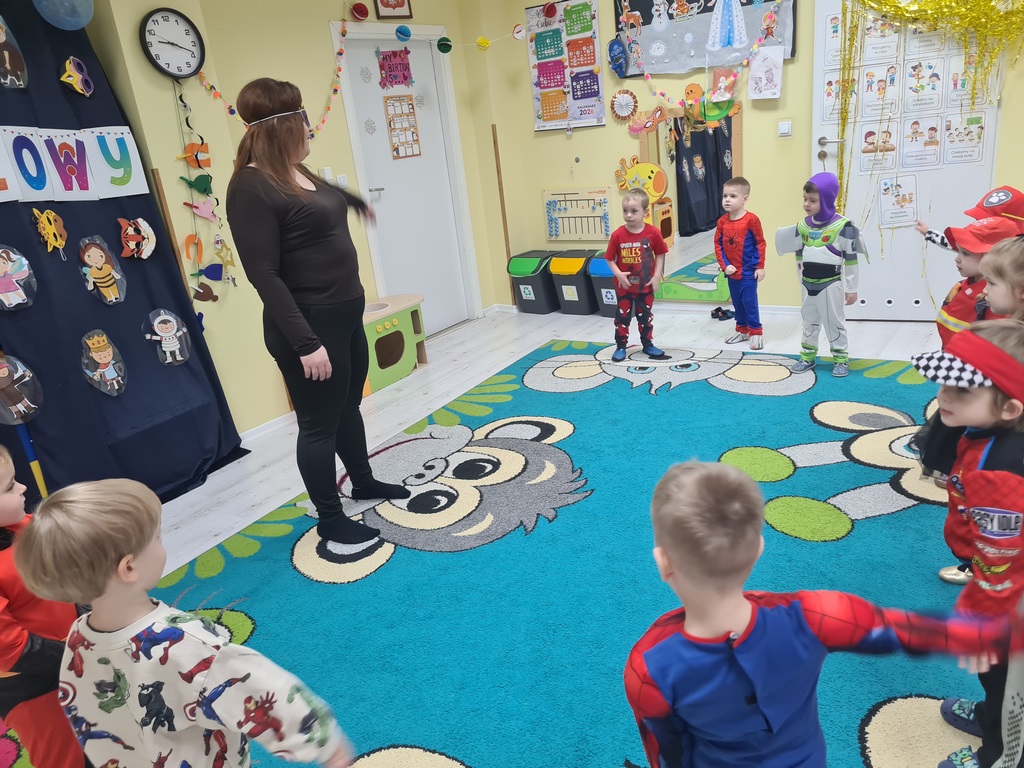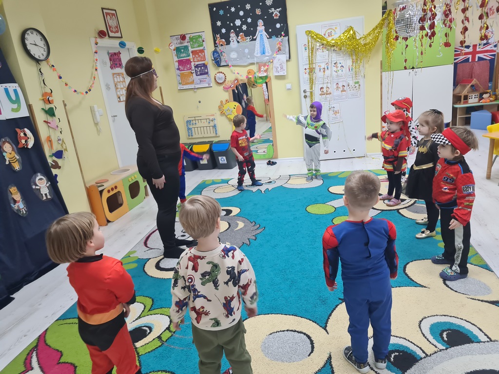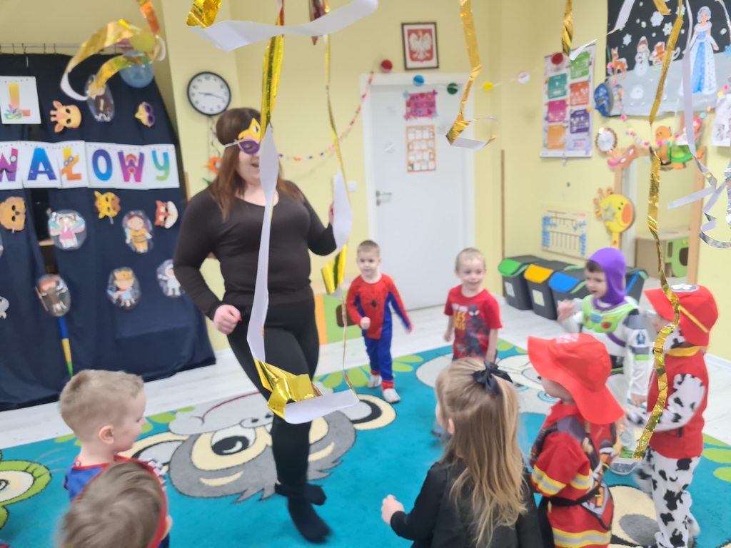 Piątek 13 lutego nie był w naszym przedszkolu pechowy, ponieważ tego dnia odbył się karnawałowy bal przebierańców. Każdy się przebrał za kogo chciał. Mieliśmy zabawy po polsku i angielsku, a później pyszny poczęstunek, za który bardzo dziękujemy rodzicom. Tego dnia także nasz kochany Adaś skończył cztery lata. Życzymy naszemu kochanemu Adasiowi dużo zdrówka, mnóstwa przyjaciół i samych słonecznych dni. A wszystkim odwiedzającym naszą galerię życzymy miłego dnia.