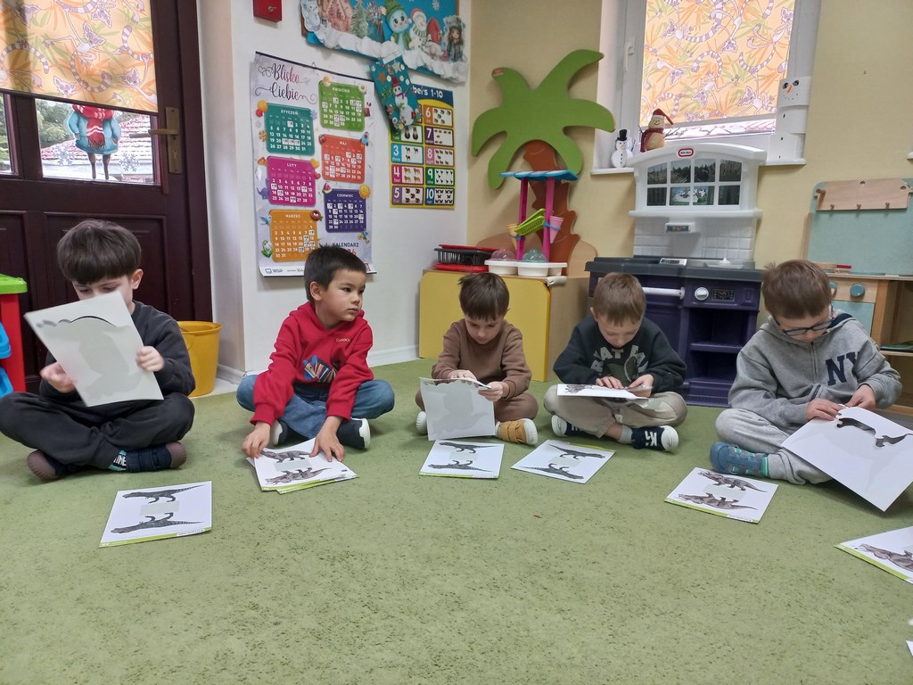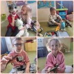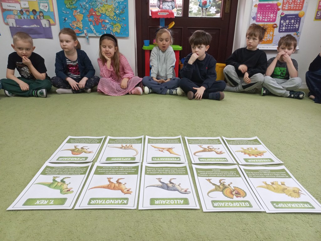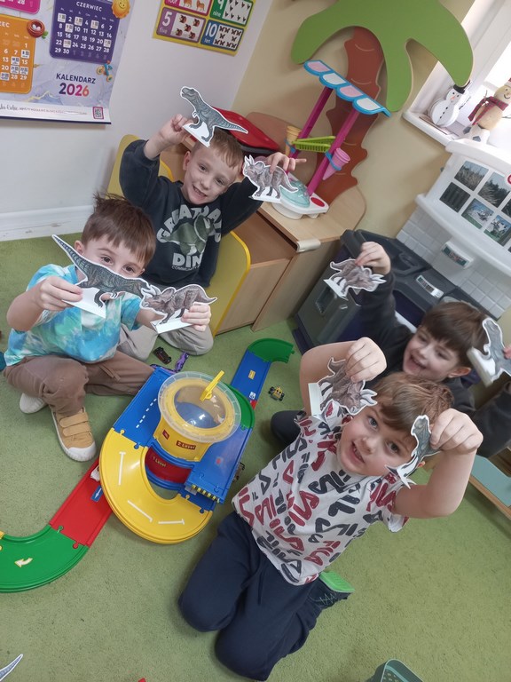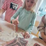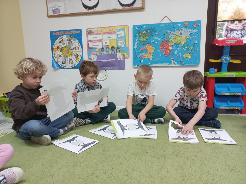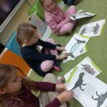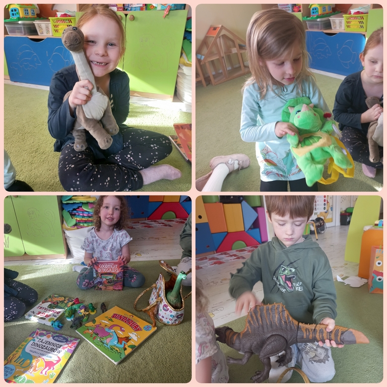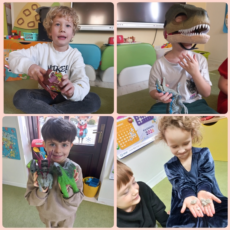 Na zajęciach dzieci poznały dinozaury – bardzo duże zwierzęta, które żyły dawno temu. Dowiedziały się, że niektóre dinozaury jadły rośliny, a inne mięso. Oglądaliśmy obrazki dinozaurów i naśladowaliśmy ich ruchy. Wykonaliśmy dinozaurowe latarki ! A także wcieliliśmy się w rolę archeologa odkrywając skamieliny. Stworzyliśmy własne papierowe dinusie,które używaliśmy podczas zabaw w czasie wolnym. Ach…zdecydowanie tydzień o dinozaurach jest jednym z ulubionych tygodni wśród dzieci ☺️