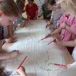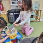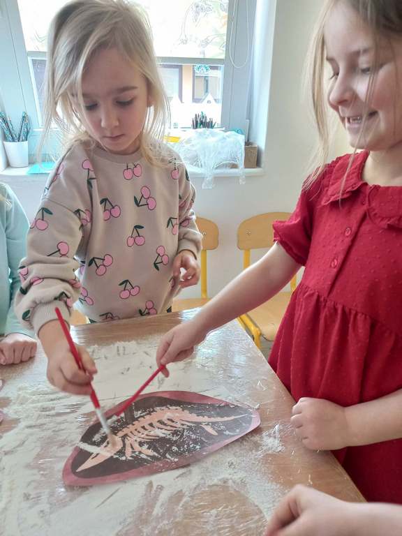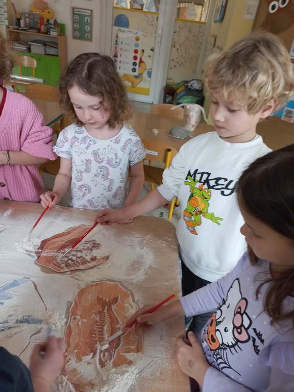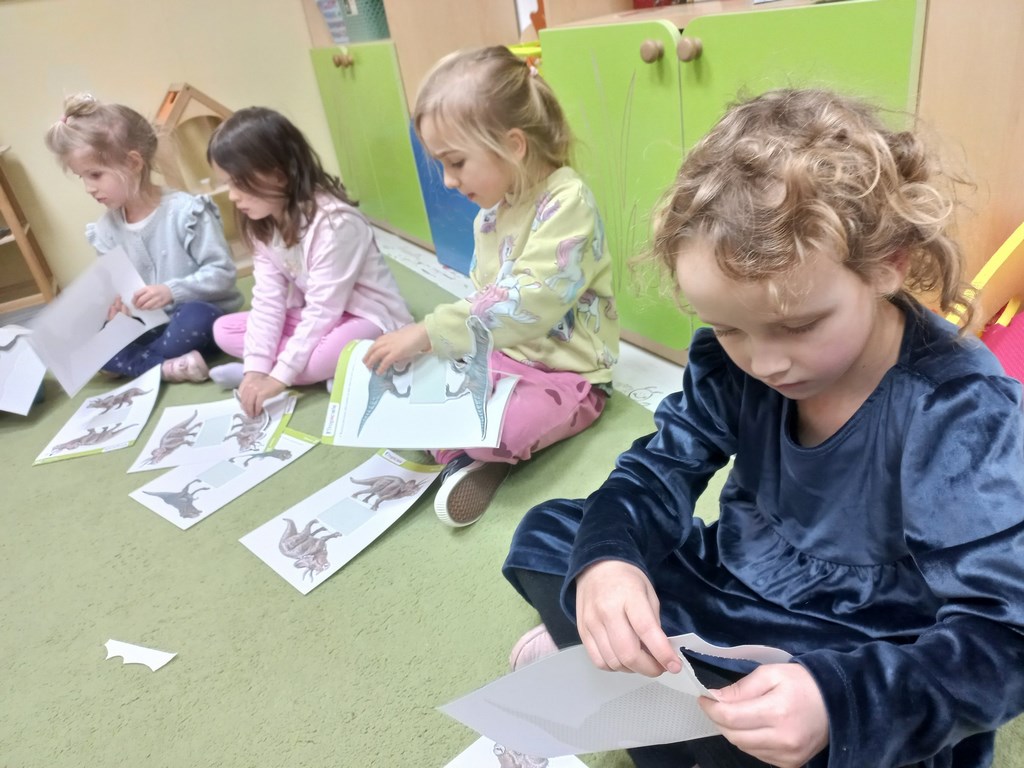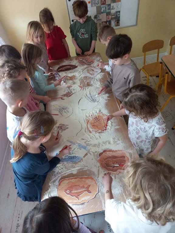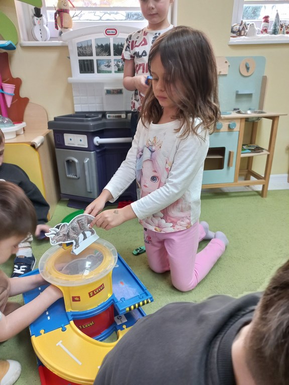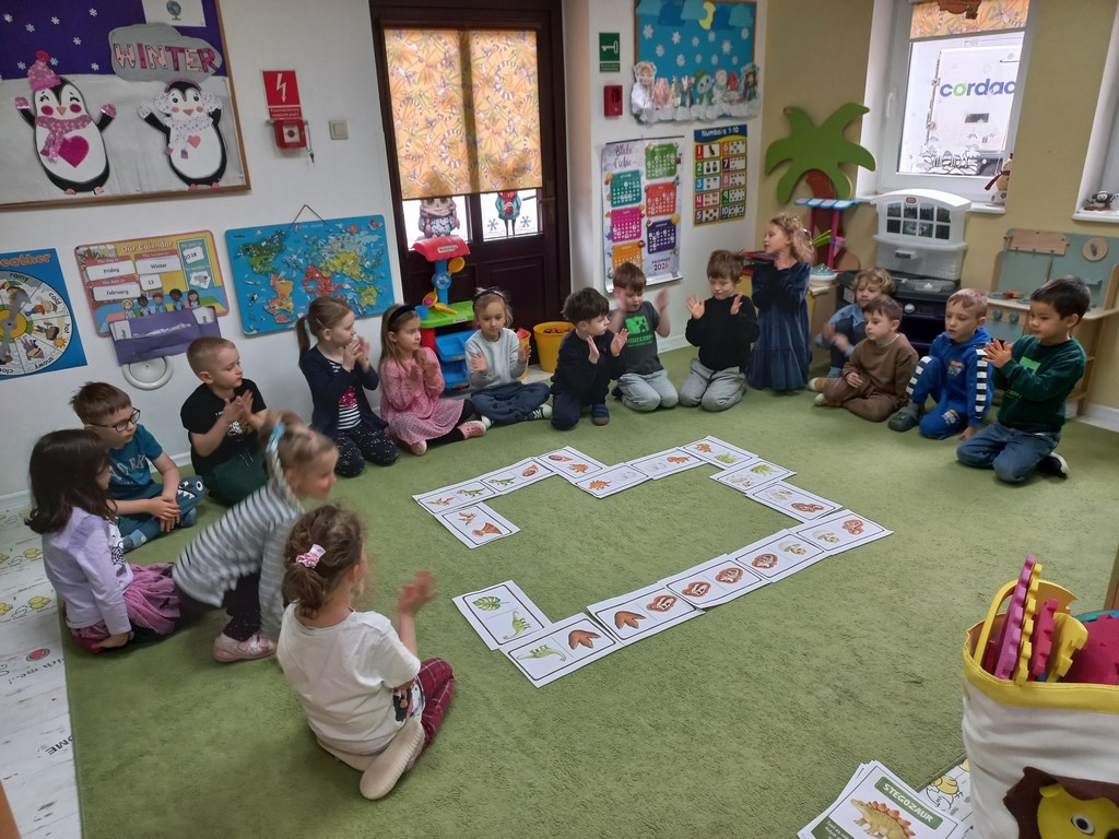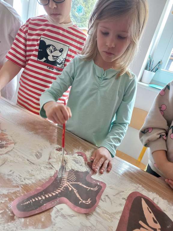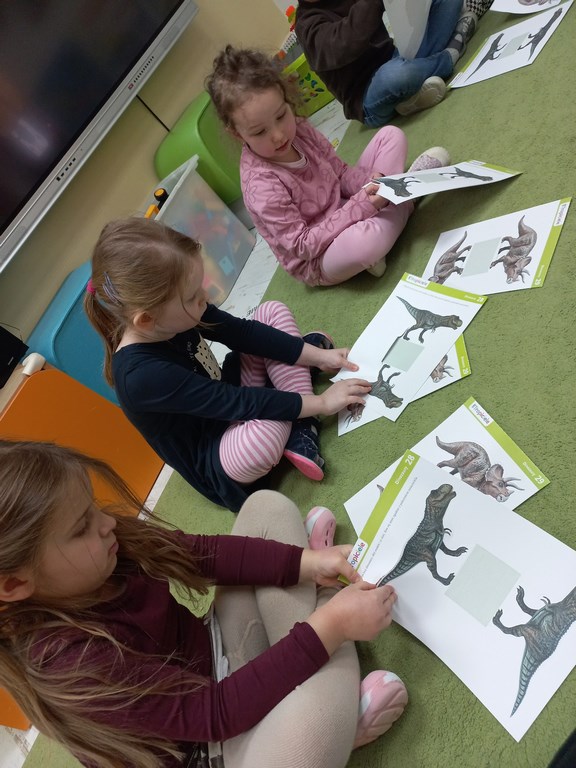 Na zajęciach dzieci poznały dinozaury – bardzo duże zwierzęta, które żyły dawno temu. Dowiedziały się, że niektóre dinozaury jadły rośliny, a inne mięso. Oglądaliśmy obrazki dinozaurów i naśladowaliśmy ich ruchy. Wykonaliśmy dinozaurowe latarki ! A także wcieliliśmy się w rolę archeologa odkrywając skamieliny. Stworzyliśmy własne papierowe dinusie,które używaliśmy podczas zabaw w czasie wolnym. Ach…zdecydowanie tydzień o dinozaurach jest jednym z ulubionych tygodni wśród dzieci ☺️