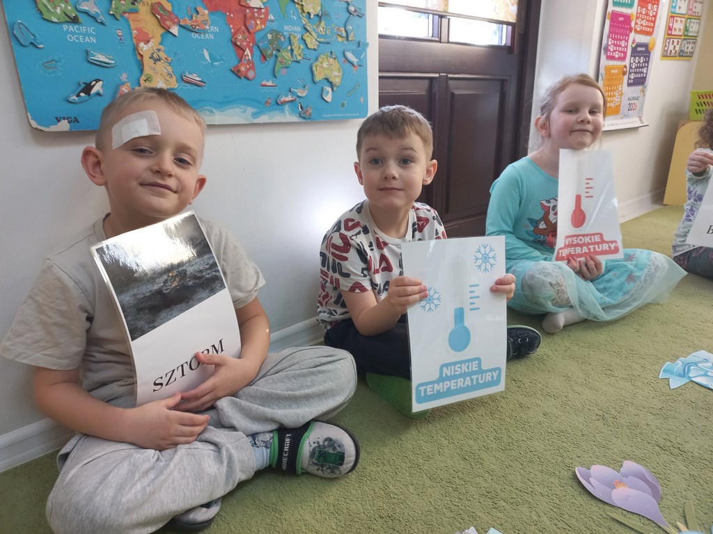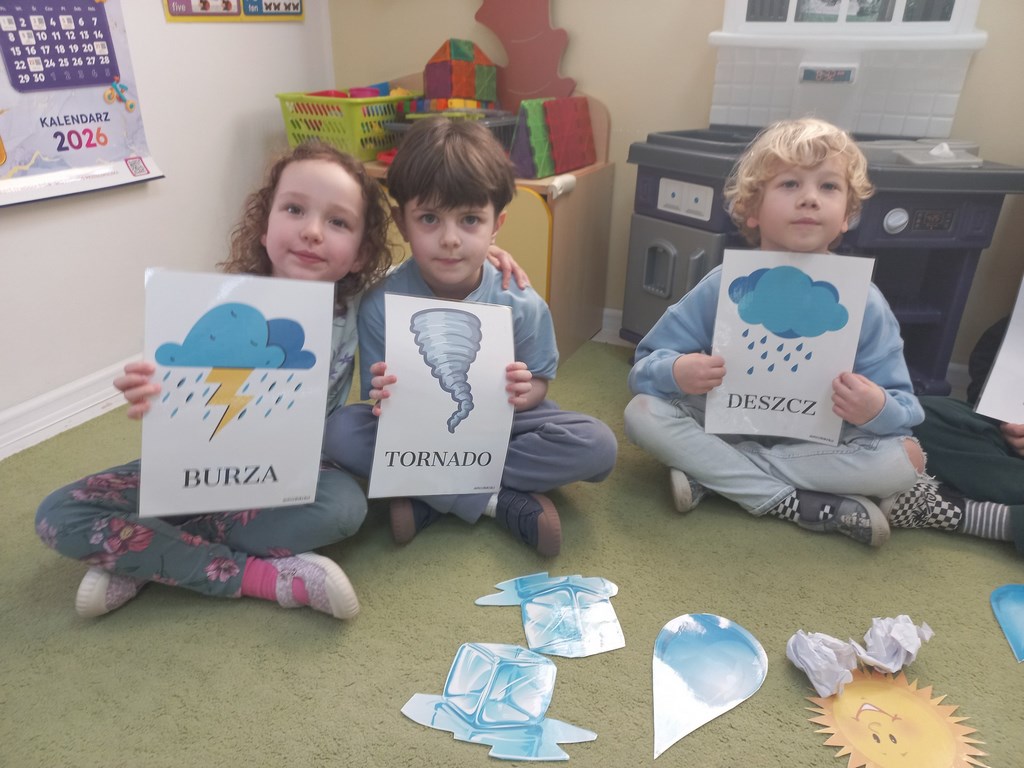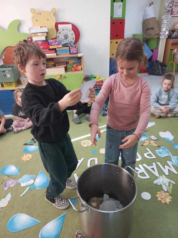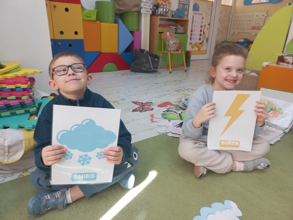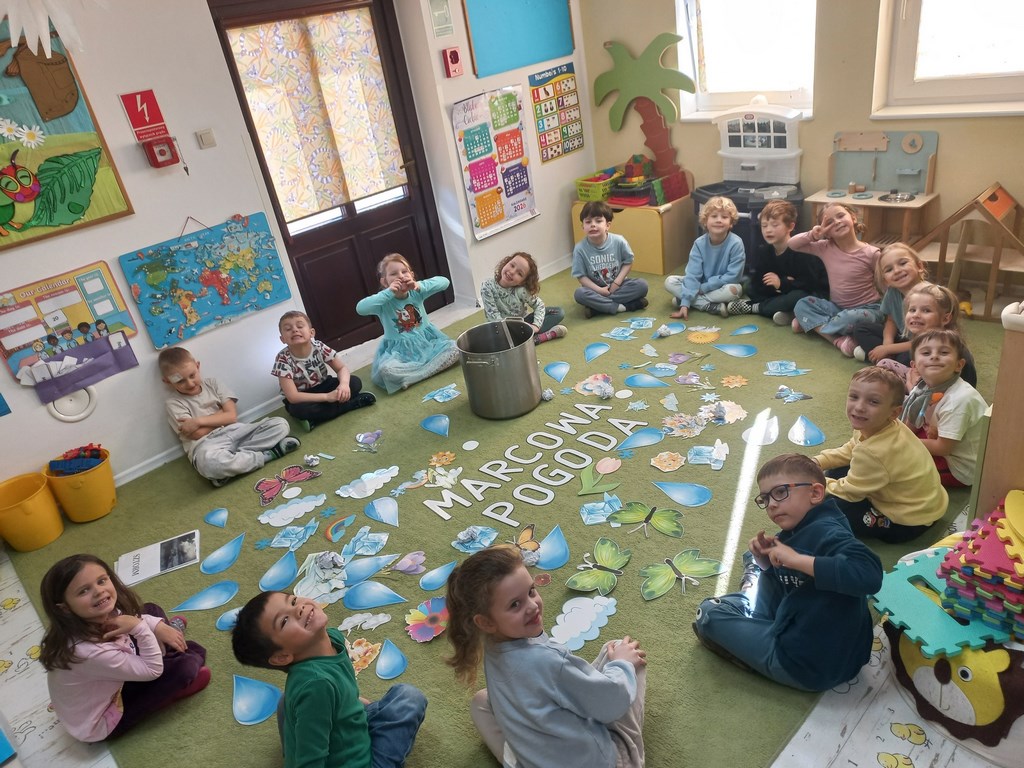 Na początku marca w przedszkolu rozmawialiśmy o zmiennej, wiosennej pogodzie. Dzieci dowiedziały się, co oznacza powiedzenie „w marcu jak w garncu” i jakie zjawiska pogodowe mogą pojawiać się w tym miesiącu. Podczas zajęć przedszkolaki obserwowały pogodę za oknem, nazywały jej elementy oraz uczyły się odpowiednio dobierać ubrania do warunków atmosferycznych. Dzieci brały udział w zabawach ruchowych, plastycznych i muzycznych związanych z pogodą. Wykonały również prace plastyczne przedstawiające marcową aurę.