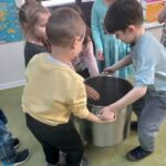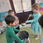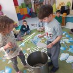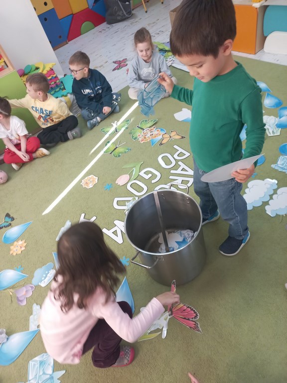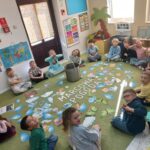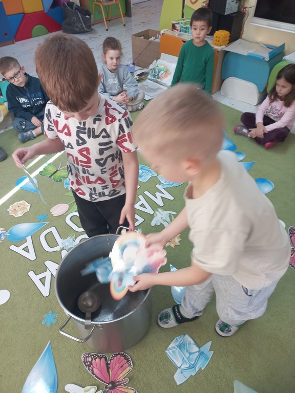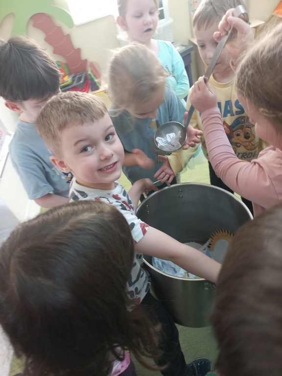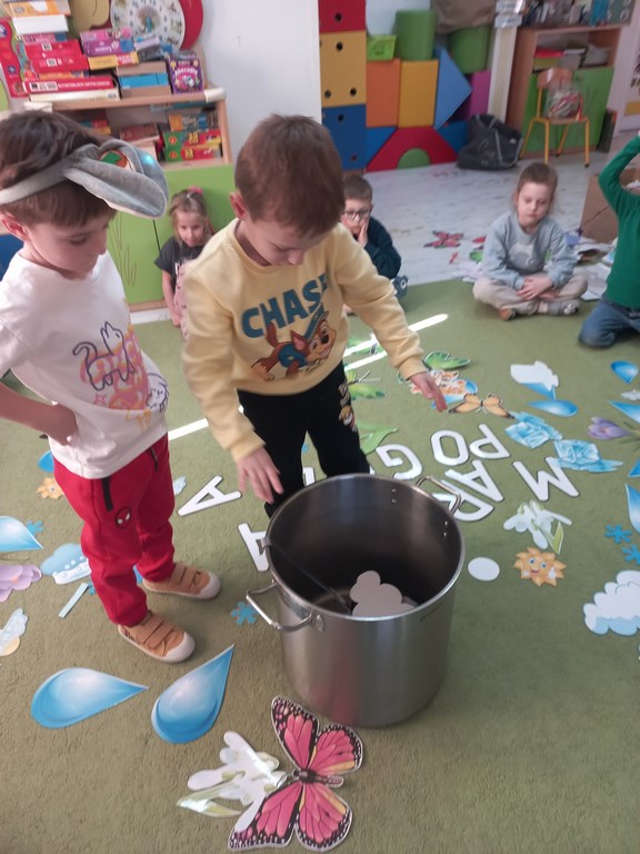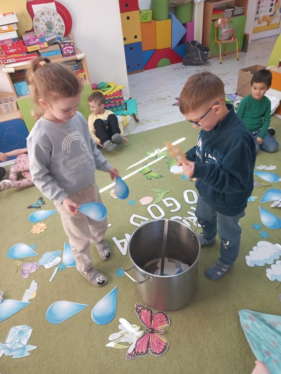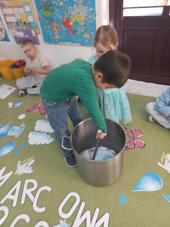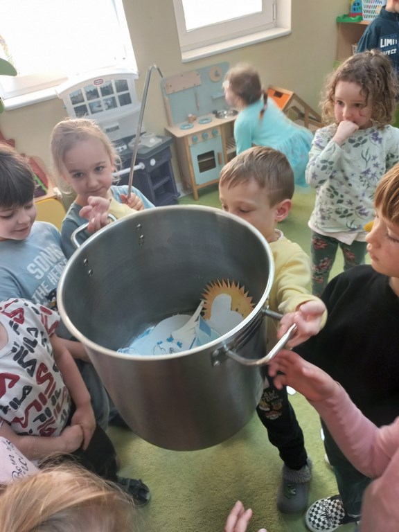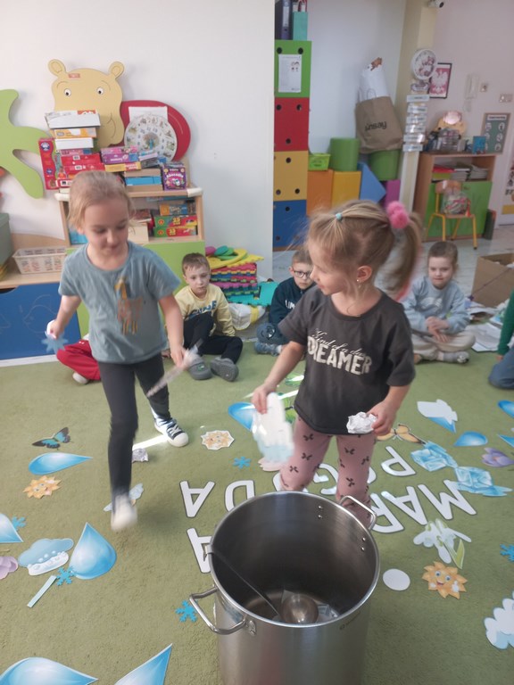 Na początku marca w przedszkolu rozmawialiśmy o zmiennej, wiosennej pogodzie. Dzieci dowiedziały się, co oznacza powiedzenie „w marcu jak w garncu” i jakie zjawiska pogodowe mogą pojawiać się w tym miesiącu. Podczas zajęć przedszkolaki obserwowały pogodę za oknem, nazywały jej elementy oraz uczyły się odpowiednio dobierać ubrania do warunków atmosferycznych. Dzieci brały udział w zabawach ruchowych, plastycznych i muzycznych związanych z pogodą. Wykonały również prace plastyczne przedstawiające marcową aurę.