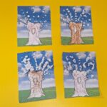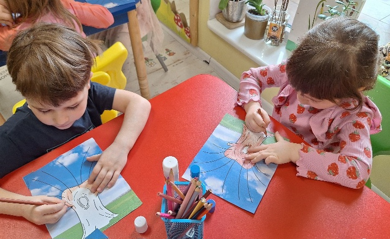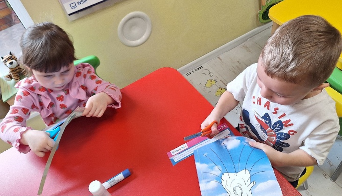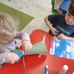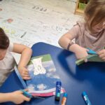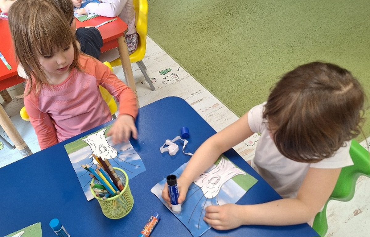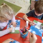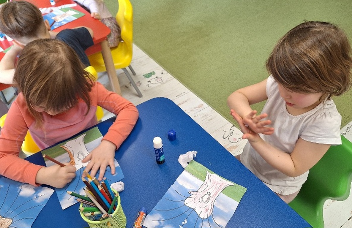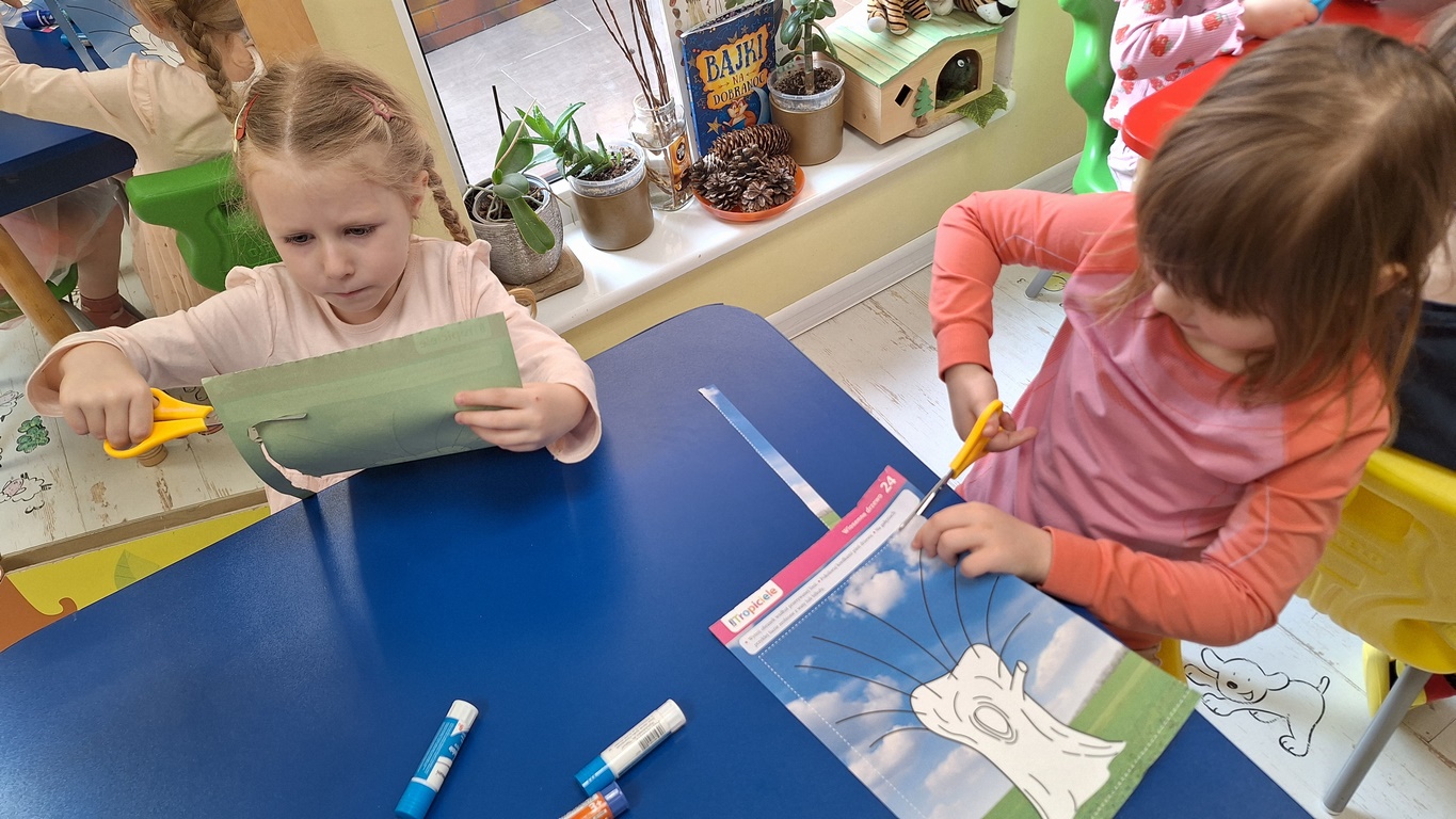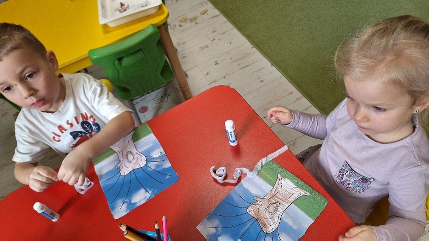 Pierwsza praca o tematyce tak długo oczekiwanej wiosny- Marcowe kotki. Dzieci wycinały, kolorowały i dolepiały bazie formowane z bibuły.