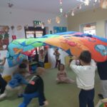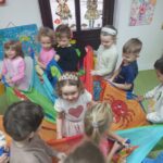 Potem bawiliśmy się w wiatr dmuchaliśmy w chusteczki i obserwowaliśmy, jak poruszają się pod jego wpływem. 🌬️