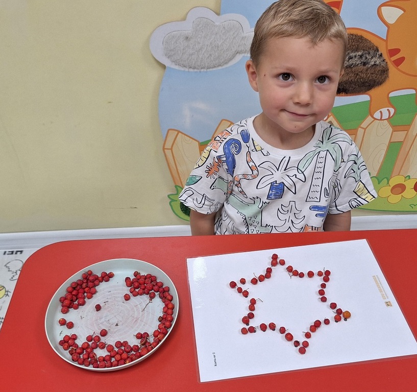 Dzieci wybierały sobie wzory , na których układały jarzębiny.