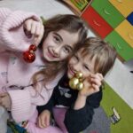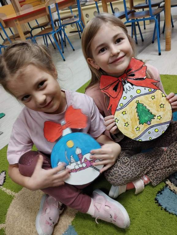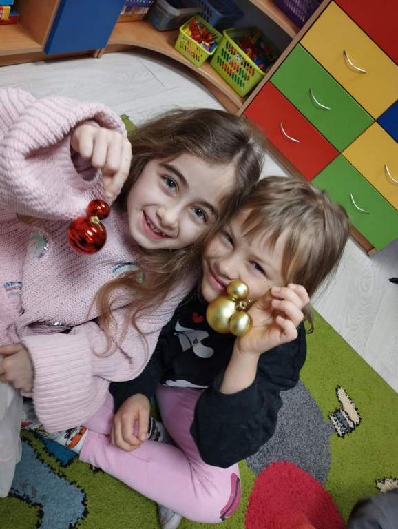 „Choinka, choineczka tu gwiazda lampeczka…” taką piosenkę z pokazywaniem maluszki ćwiczyły w tym tygodniu. Dzieci chętnie ubierały choineczke a na koniec wykonały piękne ozdoby dla rodziców.