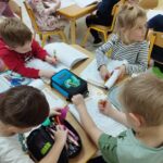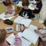 Dzień dobry, w ostatnim czasie wiele się działo 😊 cały czas poznajemy literki, dzielimy wyrazy na sylaby, uczymy się głoskować, szukamy głosek w różnych częściach słów. Ćwiczenia aparatu mowy wprowadzamy także dodatkowo podczas codziennych bloków dydaktycznych. Wykonaliśmy również pocztówki! Niebawem trafią na pocztę i dotrą do wskazanych adresatów 😁