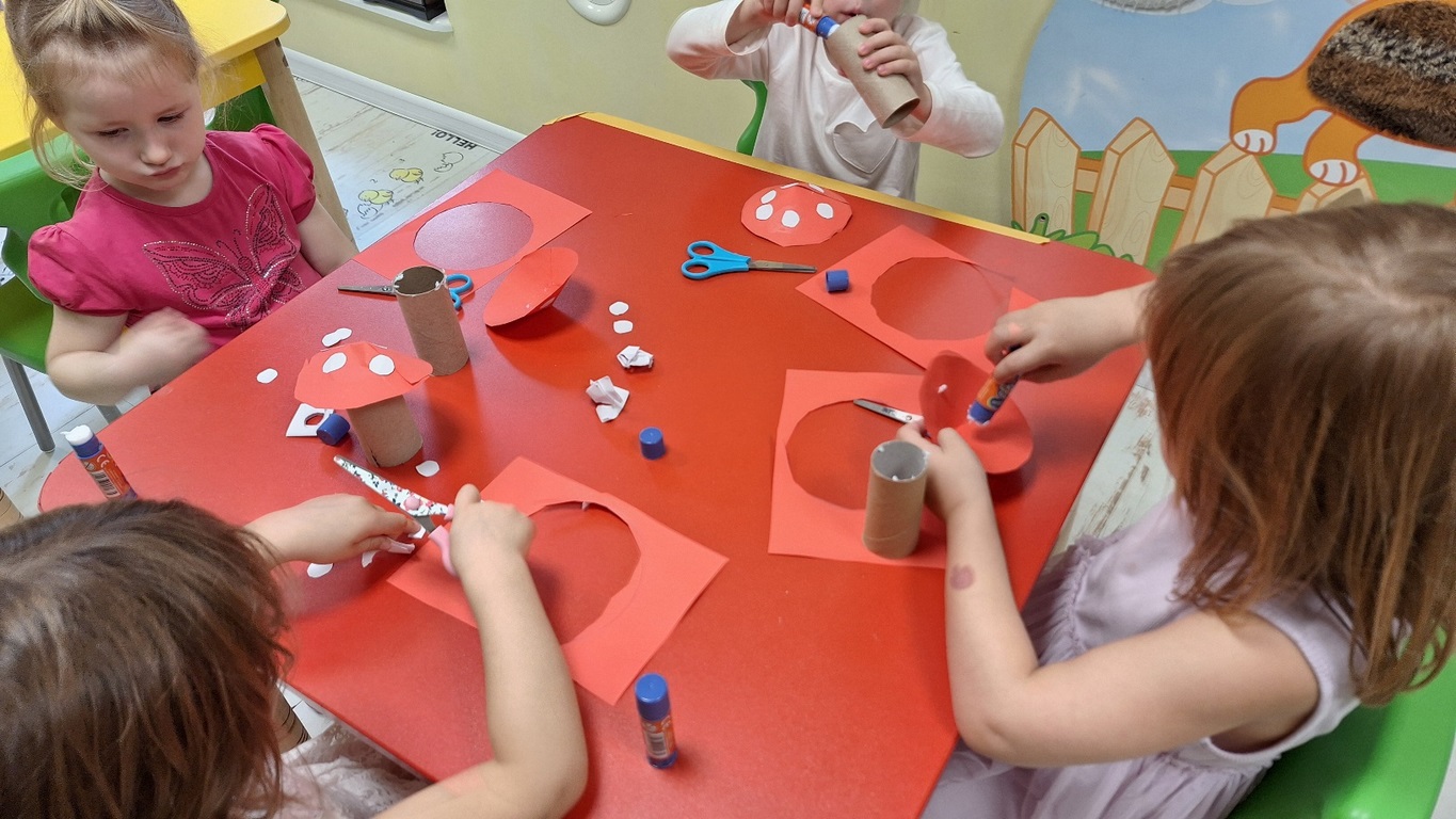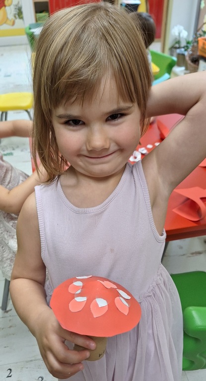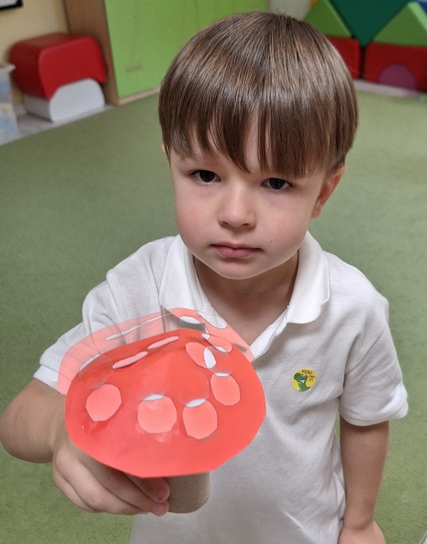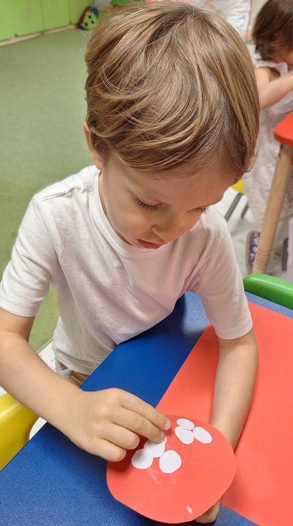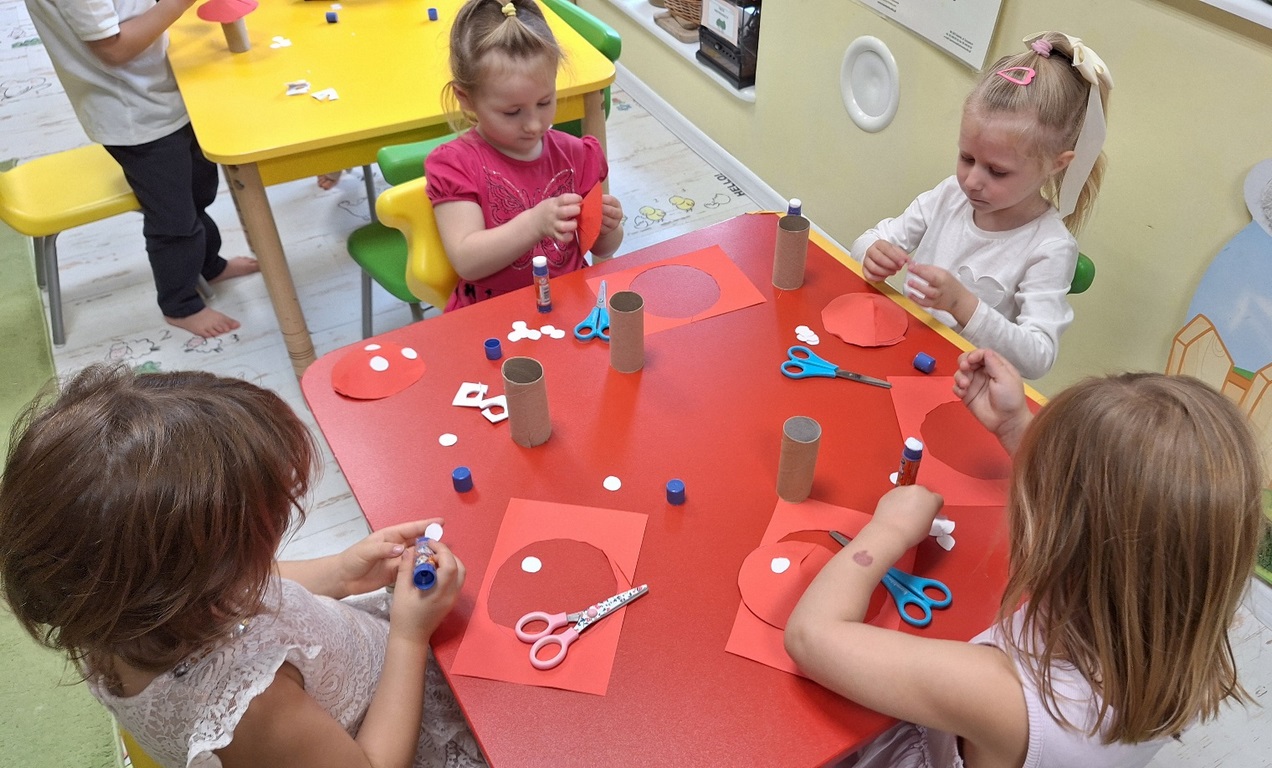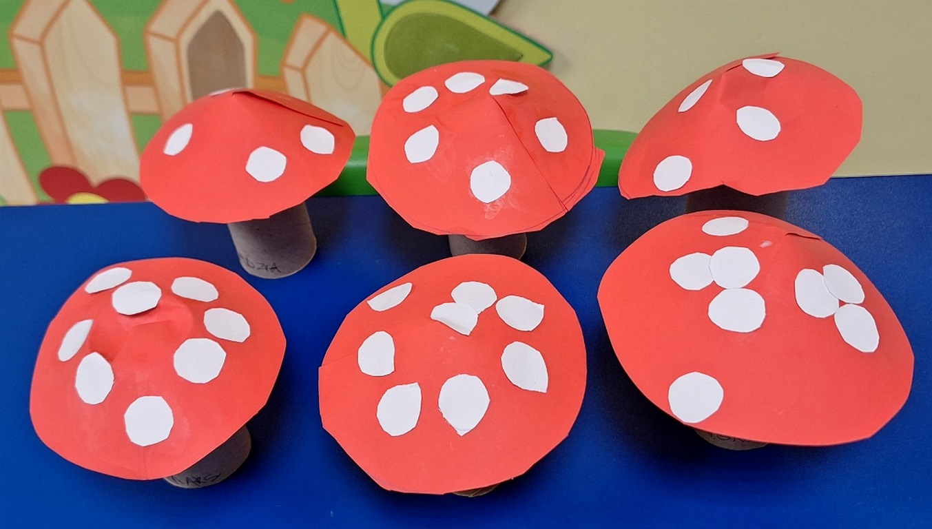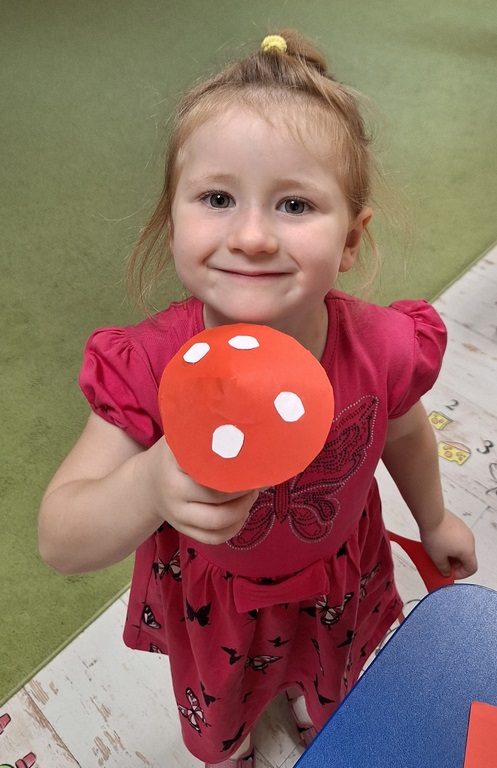 Część Tygrysków samodzielnie wycięła i zrobiła grzybki muchomorki. Brawo wy!!!