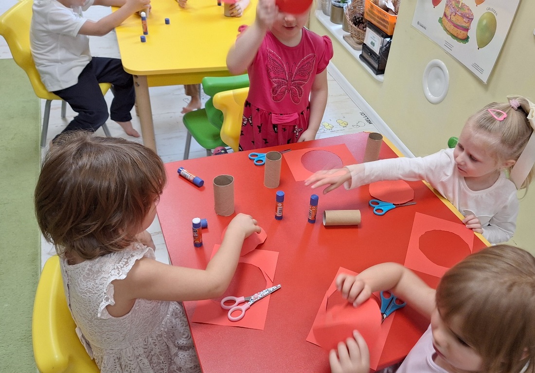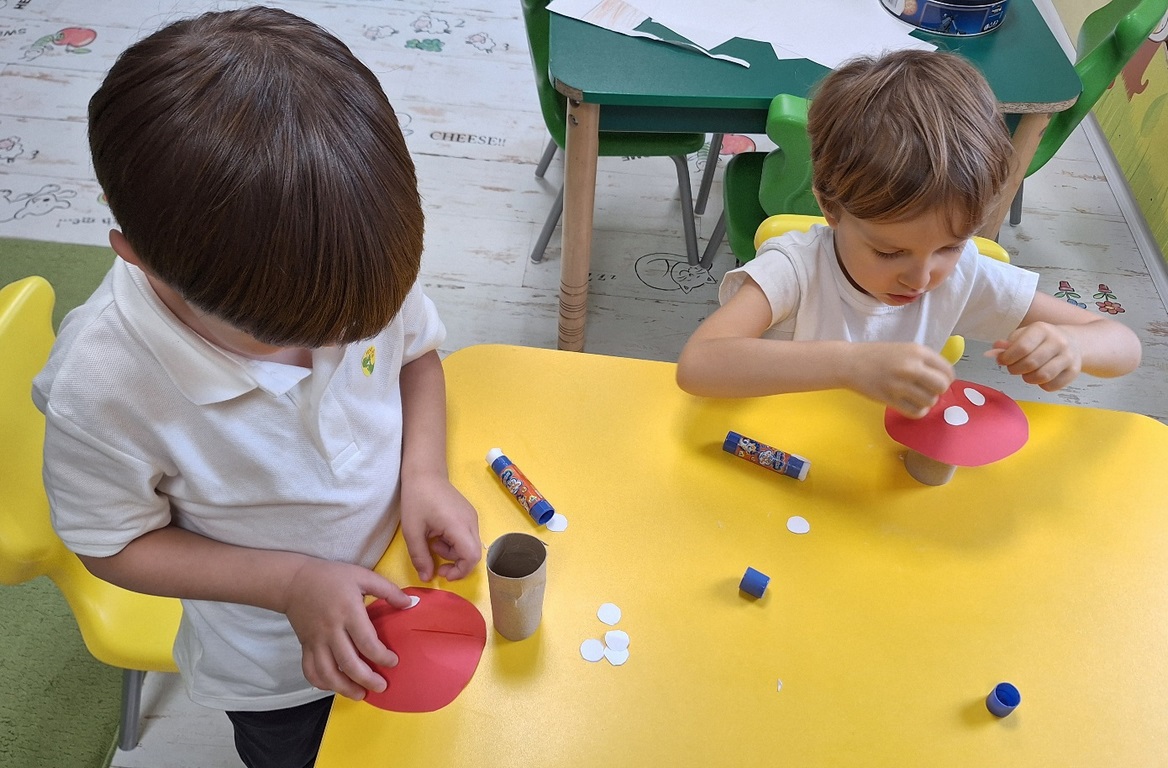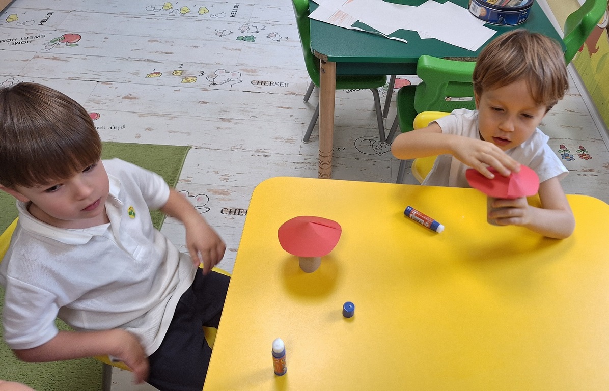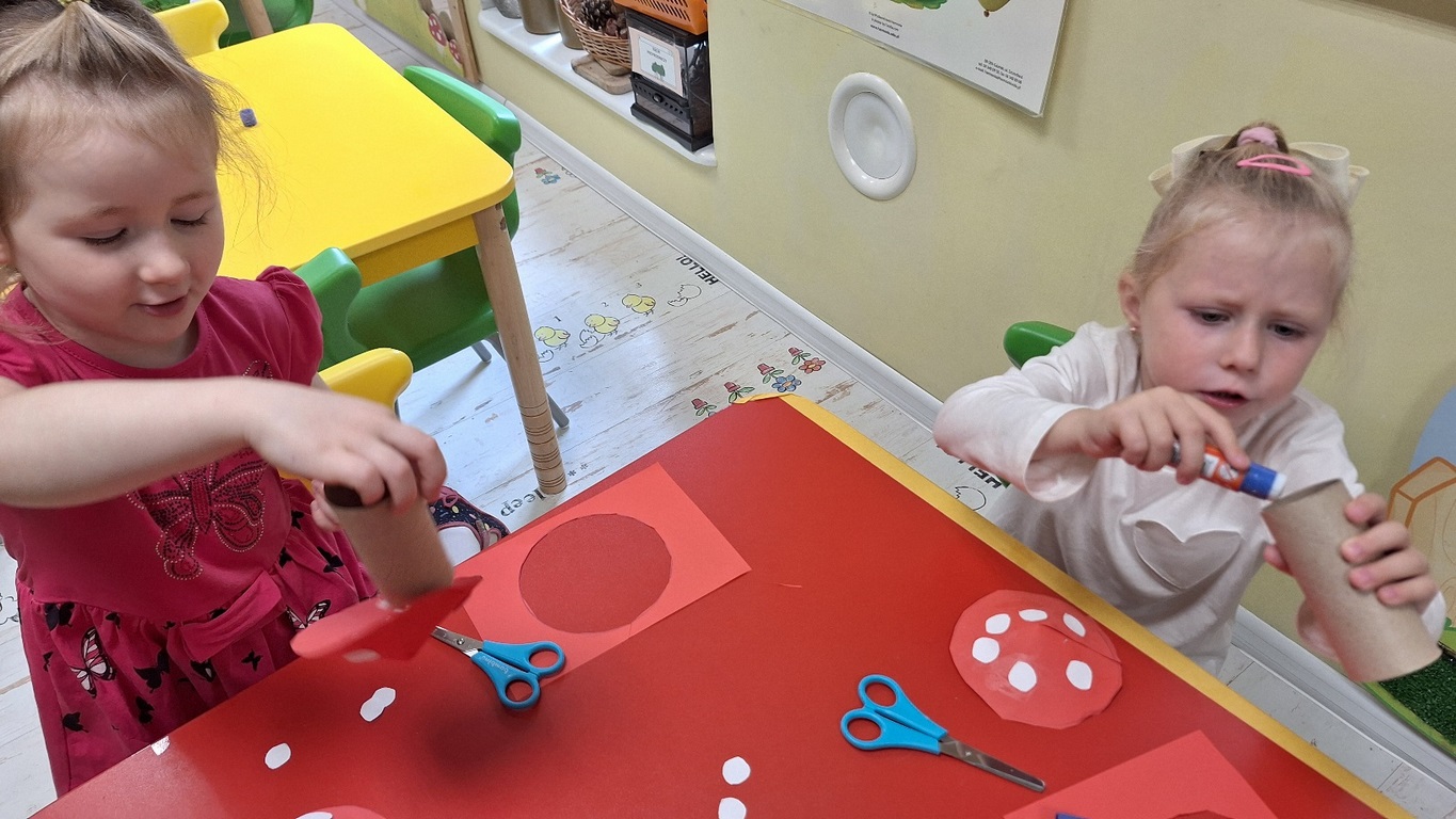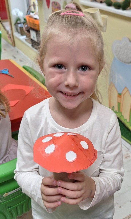Część Tygrysków samodzielnie wycięła i zrobiła grzybki muchomorki. Brawo wy!!!