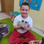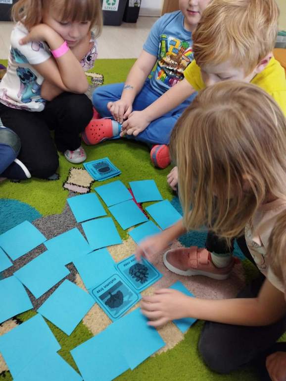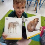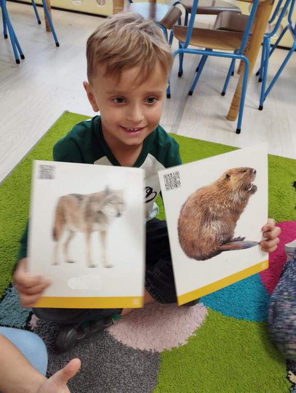 W tym tygodniu na zajęciach z języka angielskiego w grupie Pszczółek mieliśmy tydzień nawiązujący do jesiennych spacerów po lesie oraz miejskim parku. Przypomnieliśmy sobie nazwy różnych gatunków drzew, porównywaliśmy kształty liści i dopasowywaliśmy je do owoców i Darów Jesieni. Mówiliśmy o zmianach, jakie zachodzą w przyrodzie Jesienią oraz o leśnych zwierzętach.
