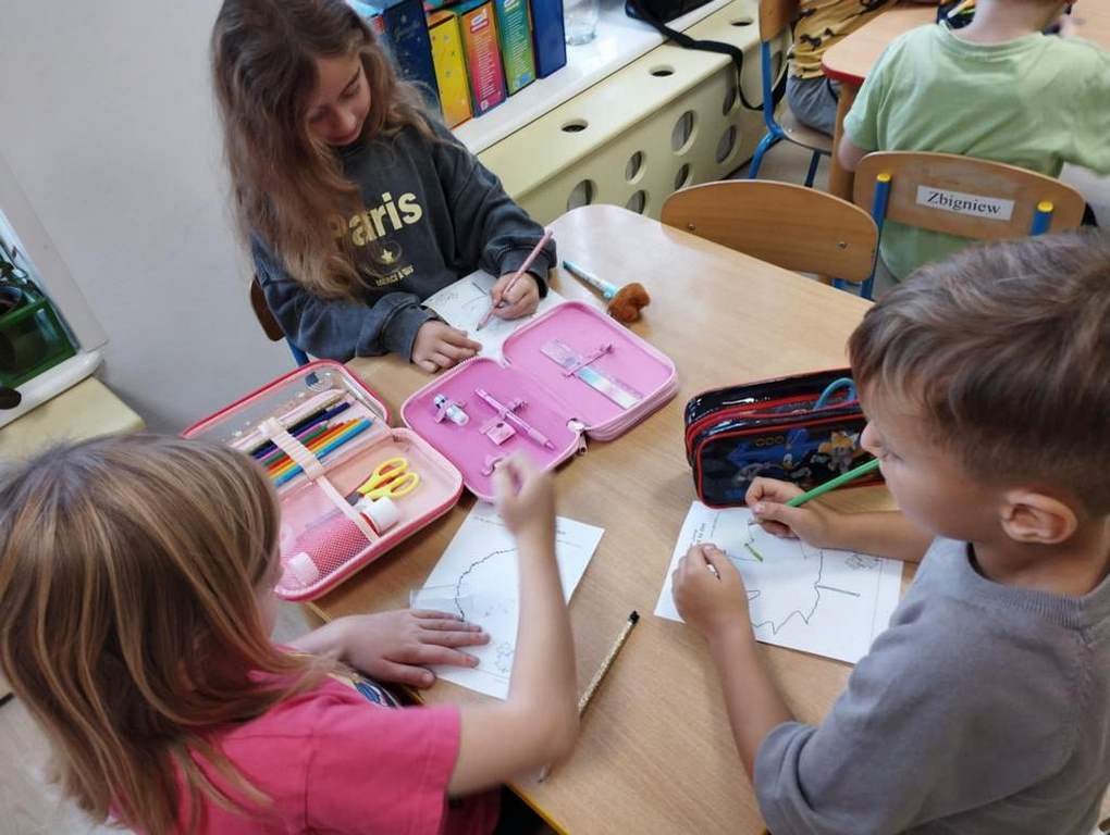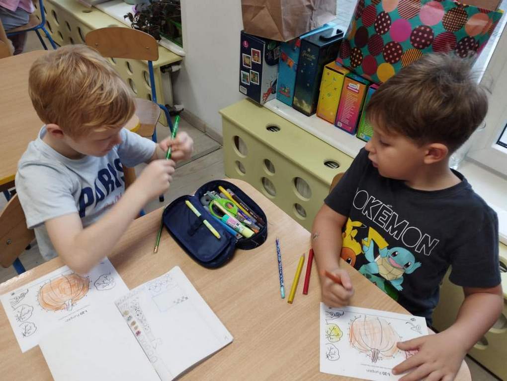 Dzieci wybierały sobie wzory , na których układały jarzębiny.