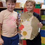 W tym tygodniu na zajęciach z języka angielskiego w grupie Sówek mieliśmy tydzień nawiązujący do jesiennych spacerów po lesie oraz miejskim parku. Poznaliśmy nazwy różnych gatunków drzew, porównywaliśmy kształty liści i dopasowywaliśmy je do owoców i Darów Jesieni. Mówiliśmy o zmianach, jakie zachodzą w przyrodzie Jesienią oraz o leśnych zwierzętach.