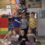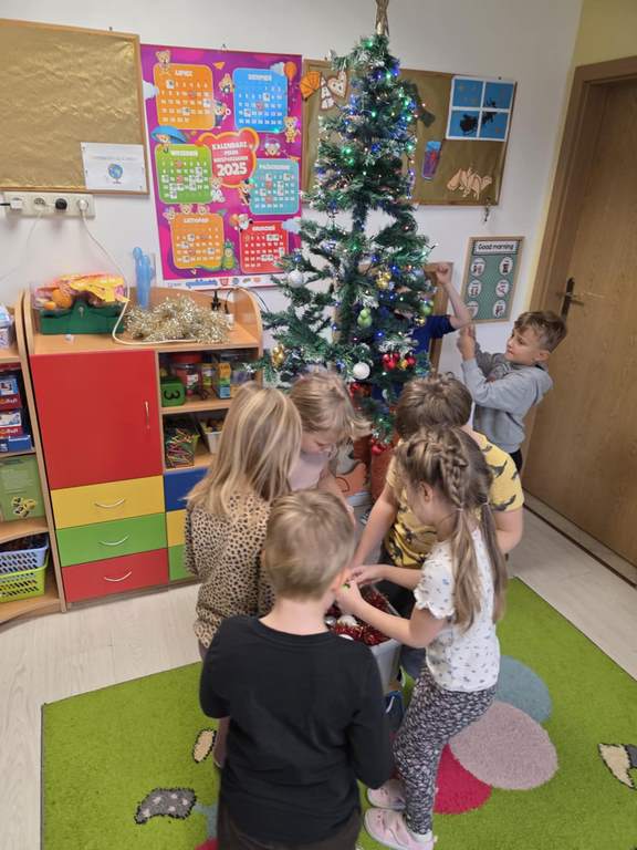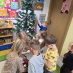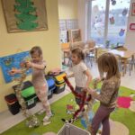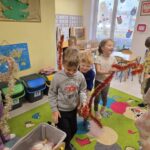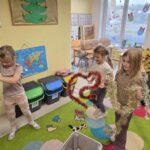 Jeżyki poznały angielskie nazwy zwierząt zamieszkujących las. Podczas wielu zabaw pamięciowych, naśladowczych oraz muzyczno-ruchowych utrwalały nowo poznane słownictwo. Obchodziliśmy również Teddy Bear’s Day, podczas którego dzieci przedstawiały kolegom i koleżankom swoje ulubione misie, rozmawialiśmy o ich wyglądzie, porównywaliśmy kolory i rozmiary pluszowych ulubieńców, a także rozwijaliśmy umiejętność liczenia.