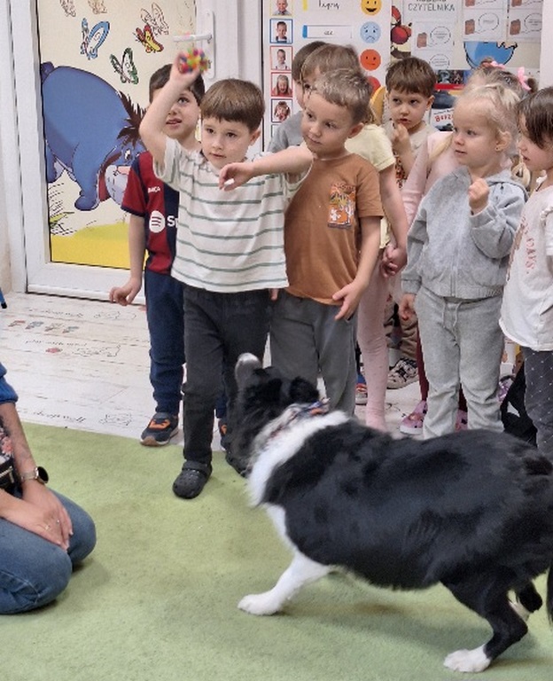 W poniedziałek odwiedziła nas Koko, czyli piesek terapeutyczny. Dzieci świetnie się bawiły z Koko, wykonały wszystkie zadania o pieskach, a później podziwiały psie akrobacje. A wszystkim odwiedzającym naszą galerię życzymy miłego dnia.