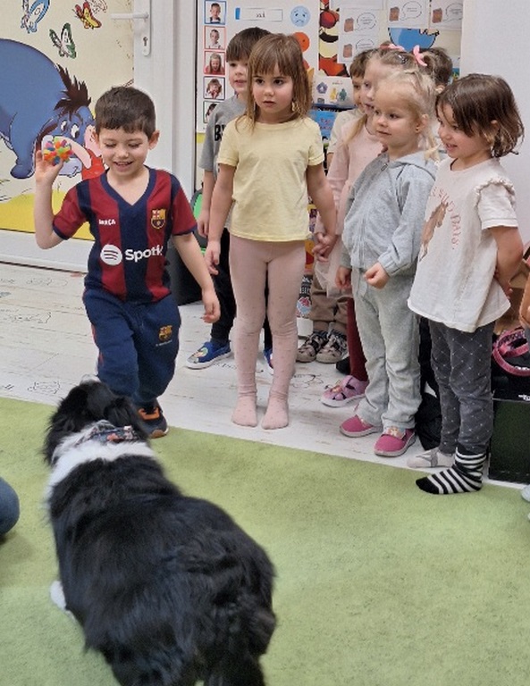 Dzieci długo czekały na Coco pieska, który odwiedza je co jakiś czas w przedszkolu. Tygryski uwielbiają wizyty pieska.