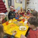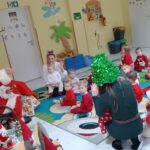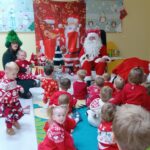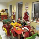 To był dzień pełen wyjątkowej magii. Dzieci z ogromnym zaangażowaniem udekorowały przedszkolną choinkę, zamieniając ją w prawdziwie bajkowe drzewko pełne światełek i kolorowych ozdób. Największe emocje pojawiły się jednak wtedy, gdy do drzwi zapukał Mikołaj. Dzieci przywitały go z zachwytem, a on obdarował każdego pięknym prezentem, dodając do tego garść uśmiechu i serdecznych słów. To był dzień naprawdę piękny, ciepły i niezapomniany — taki, który na długo zostanie w małych serduszkach.