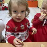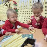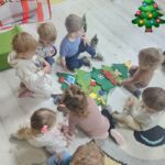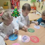 „Choinka, choineczka tu gwiazda lampeczka…” taką piosenkę z pokazywaniem maluszki ćwiczyły w tym tygodniu. Dzieci chętnie ubierały choineczke  a na koniec wykonały piękne ozdoby dla rodziców.