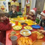 W piątek w naszym przedszkolu obchodziliśmy Mikołajki. Odwiedził nas niezwykle miły gość – św. Mikołaj. A  po jego wizycie zrobiliśmy sobie świąteczne przyjęcie z poczęstunkiem, za który bardzo dziękujemy rodzicom. A wszystkim odwiedzającym naszą galerię życzymy miłego dnia.