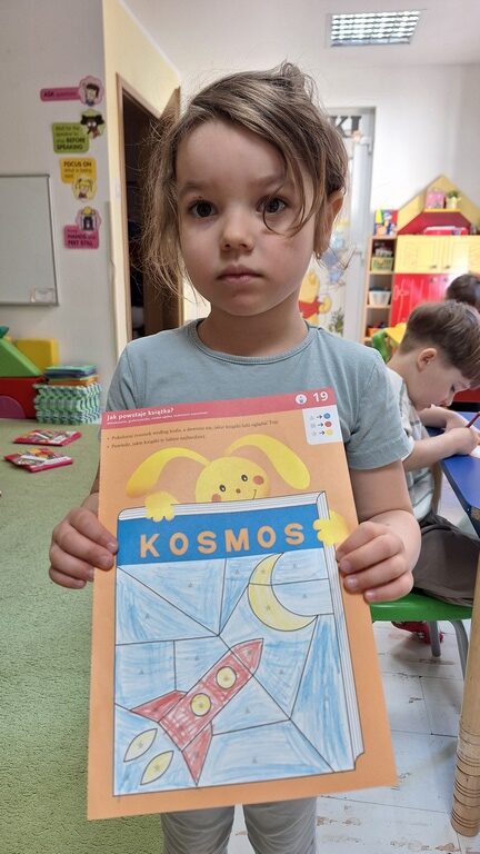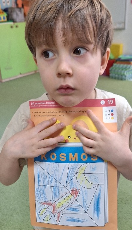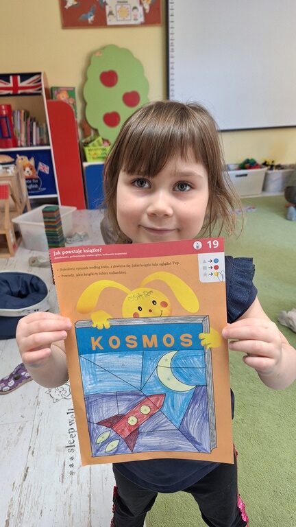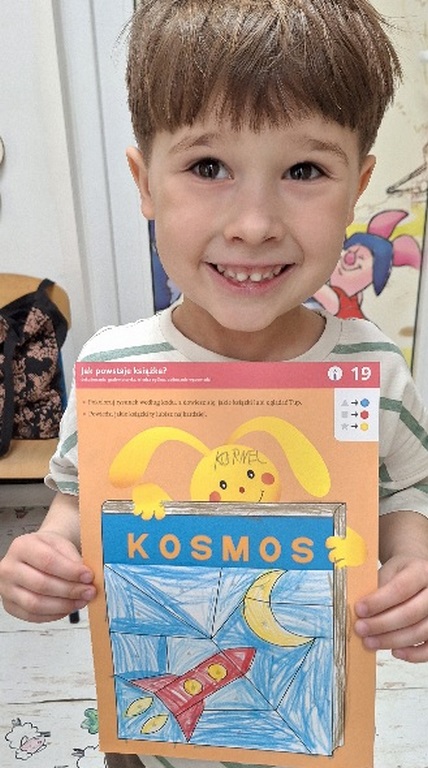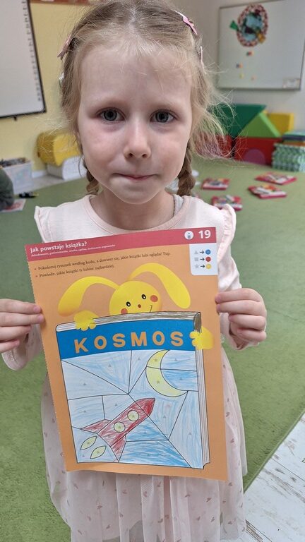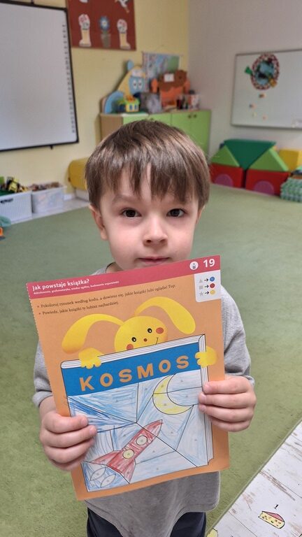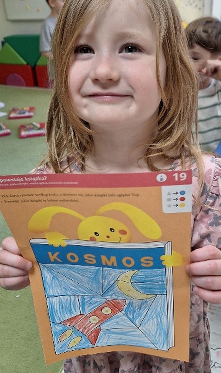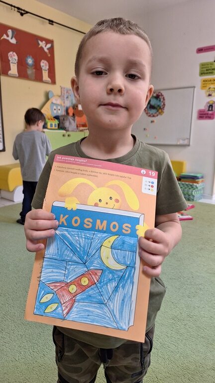 Dzieci po pogadance na temat ulubionej książki wykonały pracę , którą zadał im Tup. Używając kodu Tygryski pokolorowały ” ulubioną książkę” Tupa – Kosmos. Zadanie dla dzieci okazało się proste.Brawo Tygrysy!!