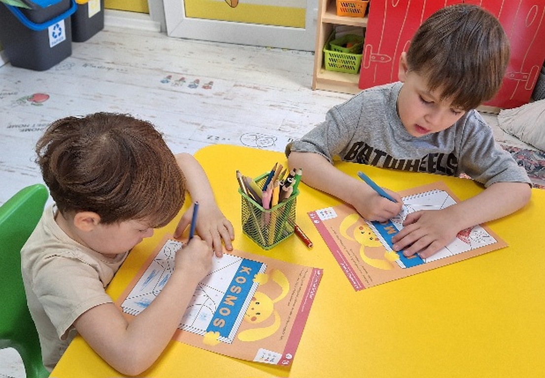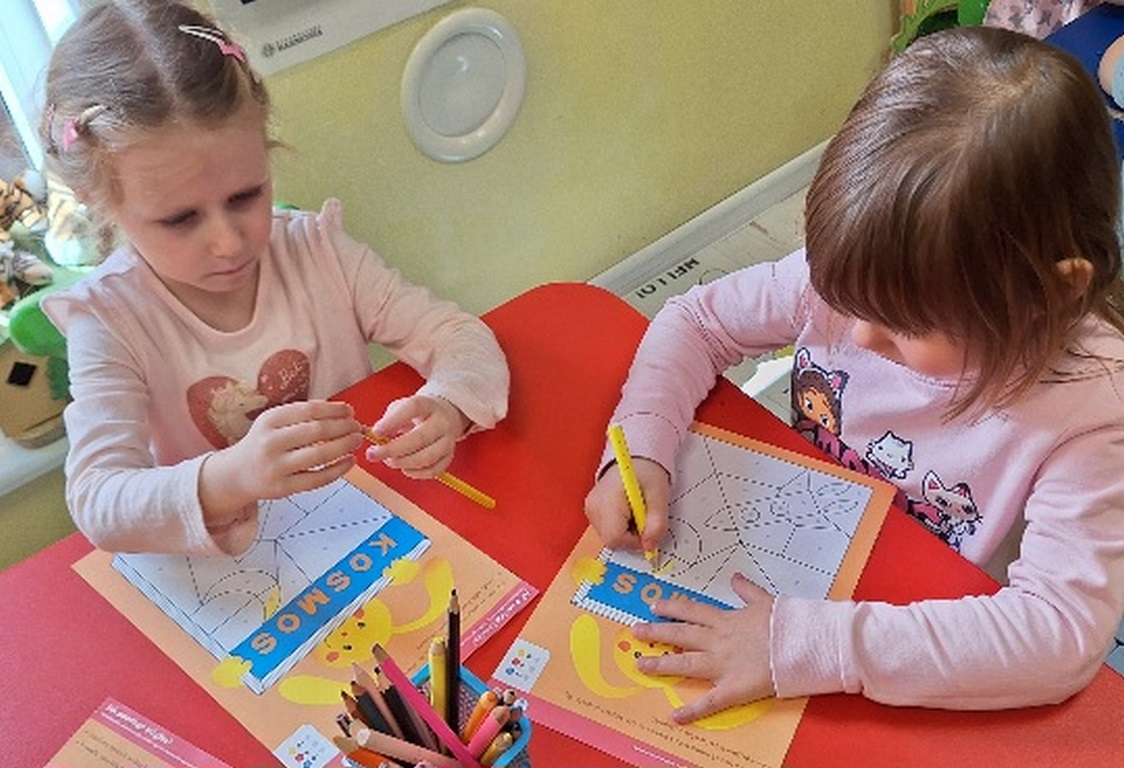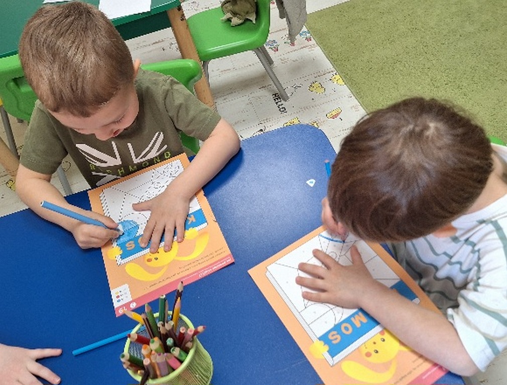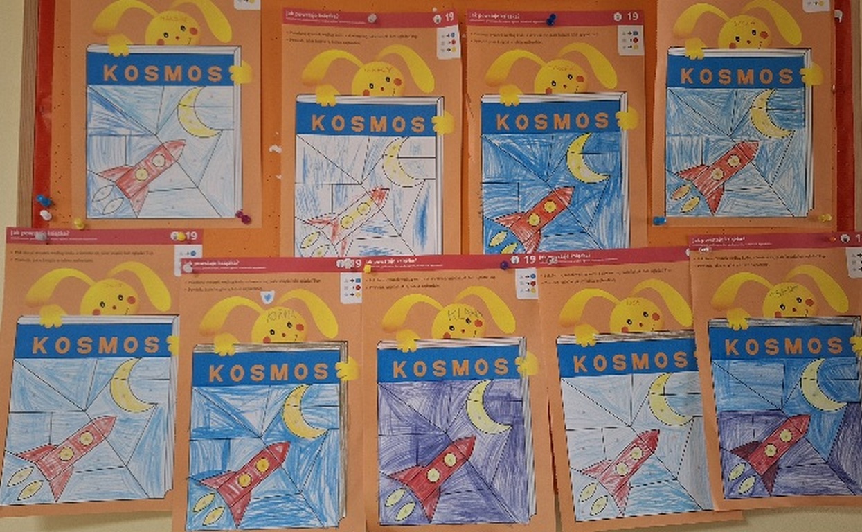 Dzieci po pogadance na temat ulubionej książki wykonały pracę , którą zadał im Tup. Używając kodu Tygryski pokolorowały ” ulubioną książkę” Tupa – Kosmos. Zadanie dla dzieci okazało się proste.Brawo Tygrysy!!