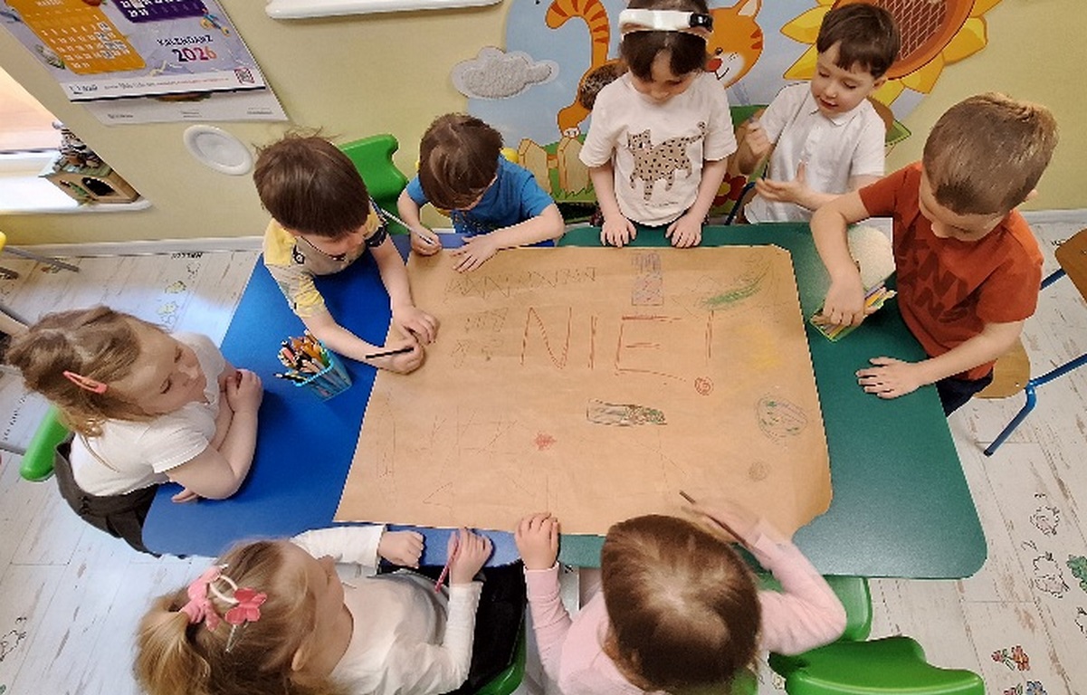 W tym tygodniu sprawdzaliśmy co powoduje zanieczyszczenie powietrza, którym oddychamy.Swoje pomysły dzieci narysowały na wspólnym plakacie, który ma uświadamiać wszystkim, jakie zagrożenia czychają na nas wszędzie wokół nas.