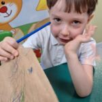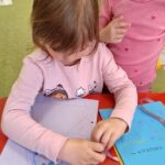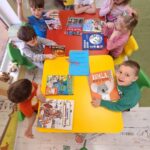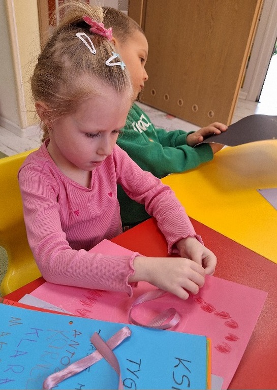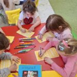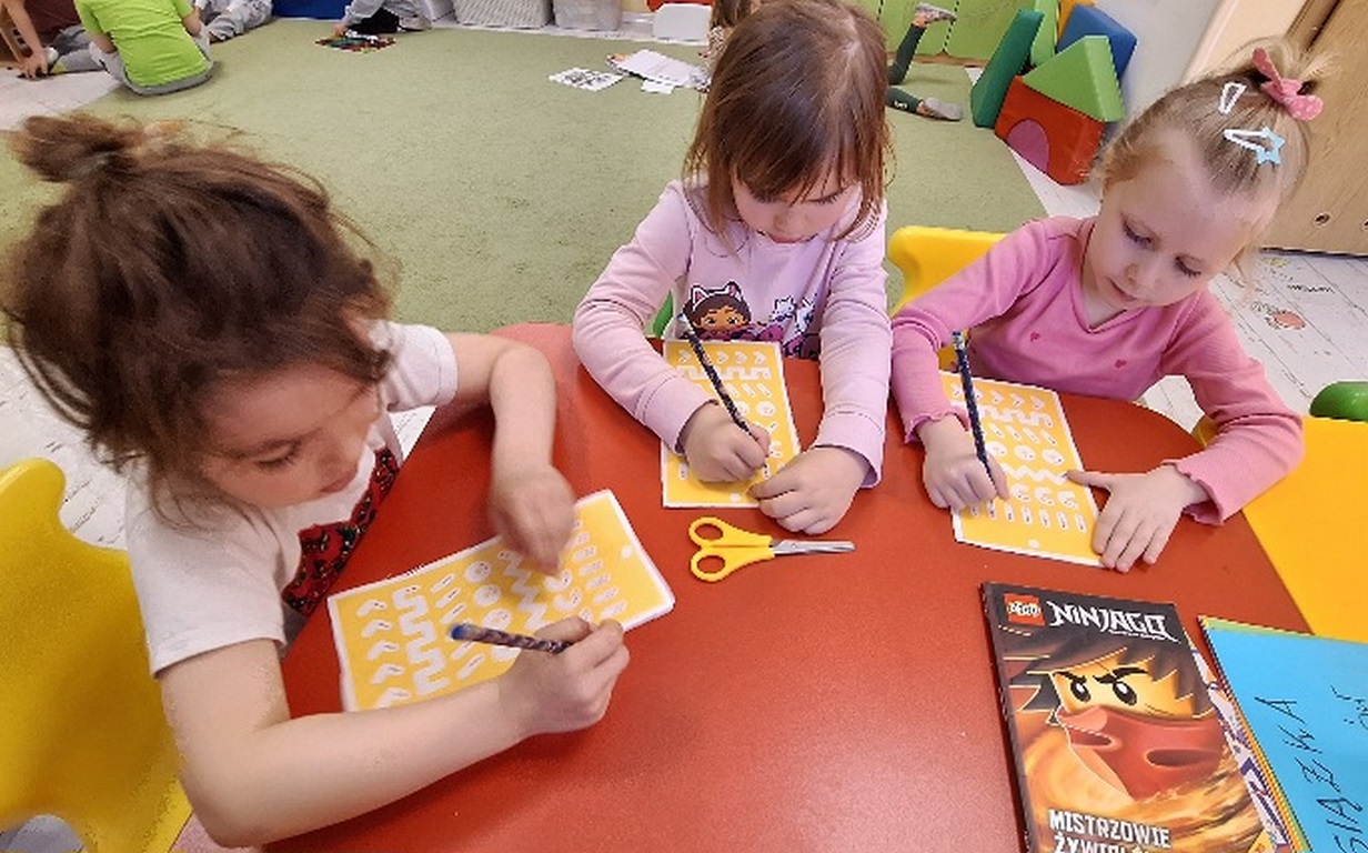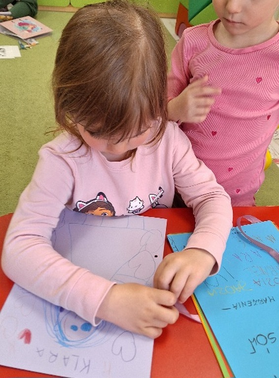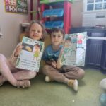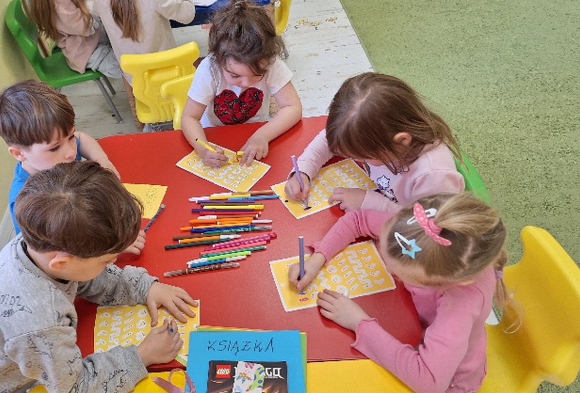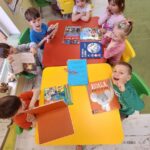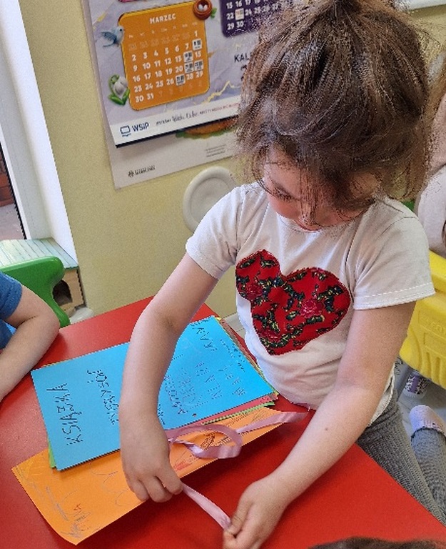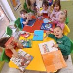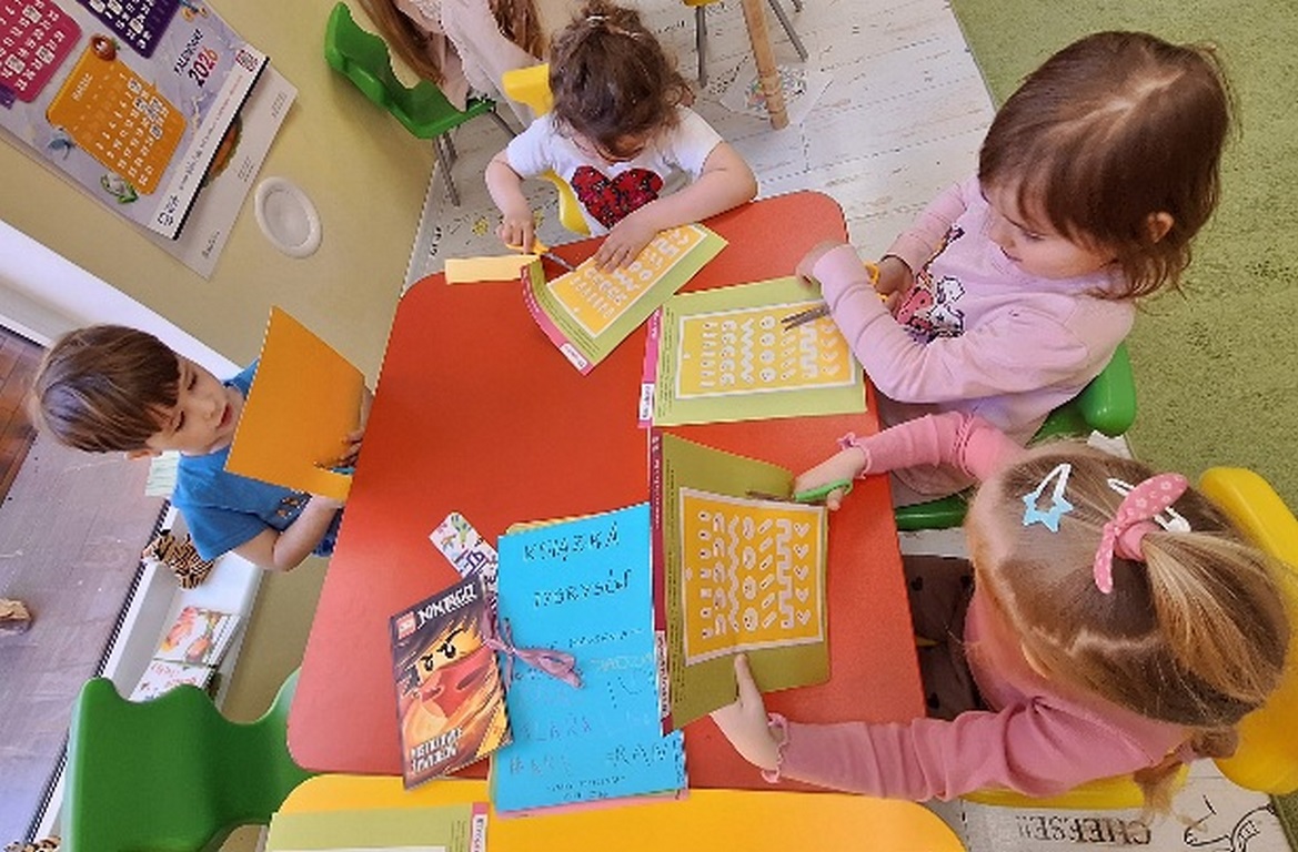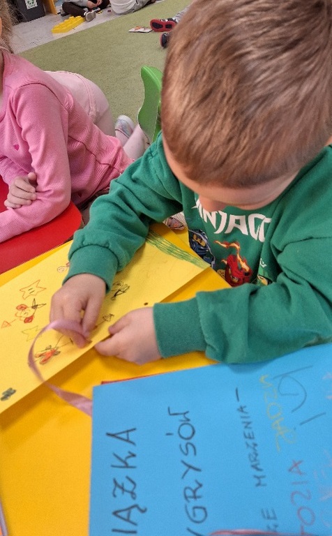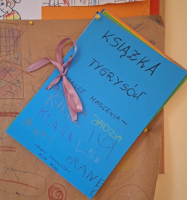 Dzień Książki zaraz po wizycie w bibliotece był świetnym powodem do dokończenia przez dzieci wspólnej Tygryskowej książeczki. Każde dziecko narysowało swoje marzenia o których wszystkim Tygryskom ” przeczytało”, następnie kartki dostały numery stron i zostały razem zawiązane wstążką tworząc książkę. Dzieci zrobiły również zakładki do książek, które chętnie zabrały do domu.