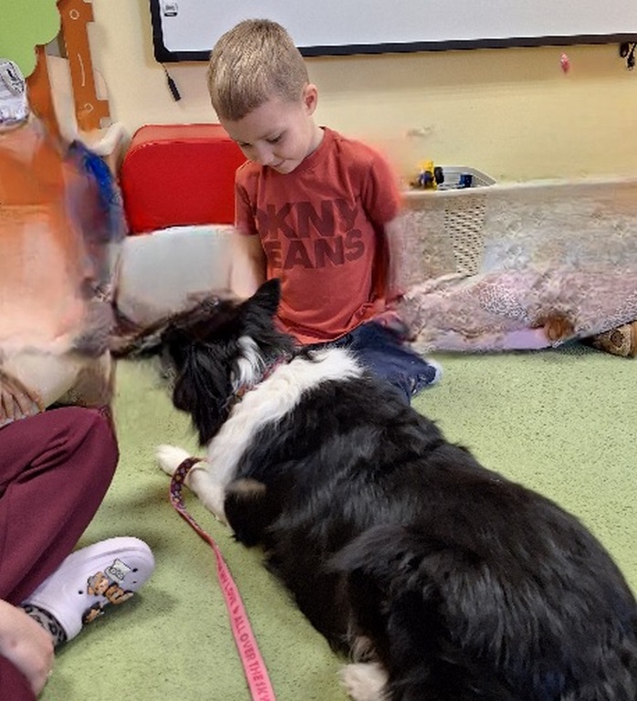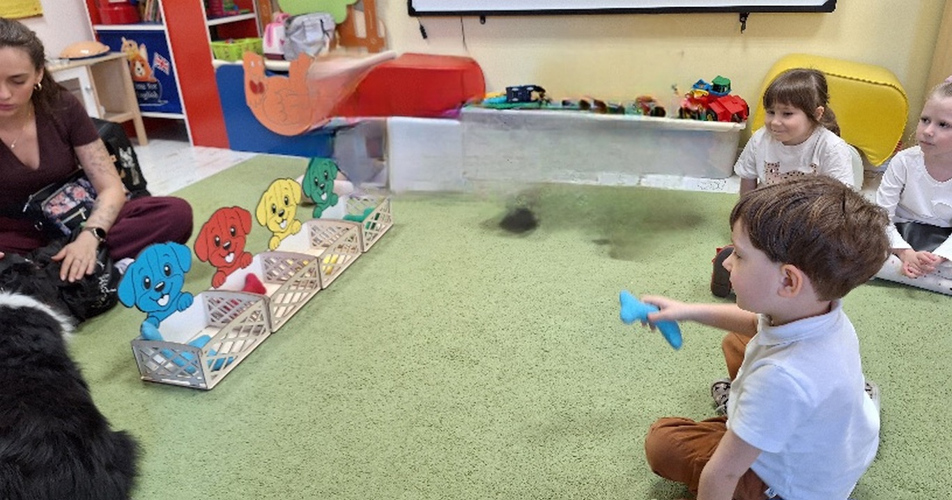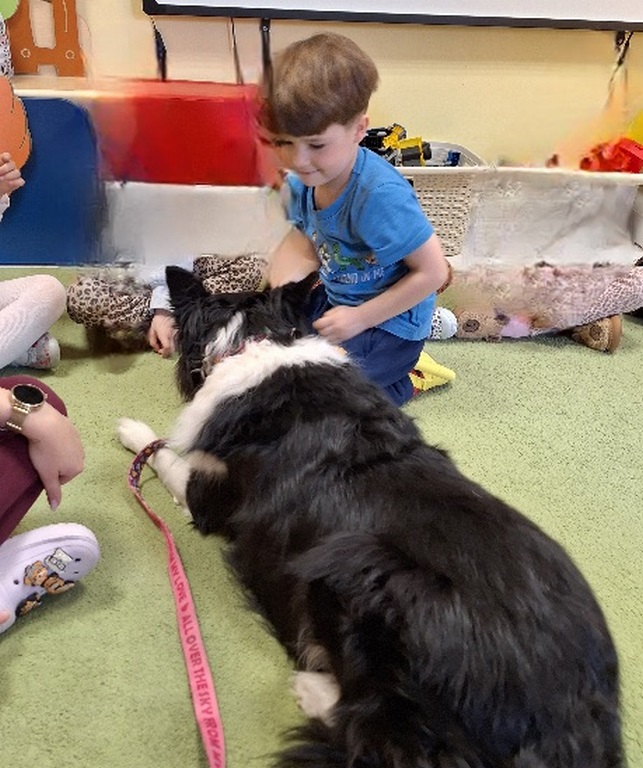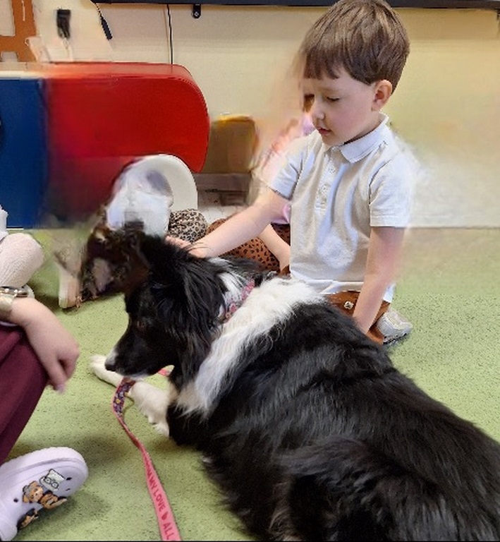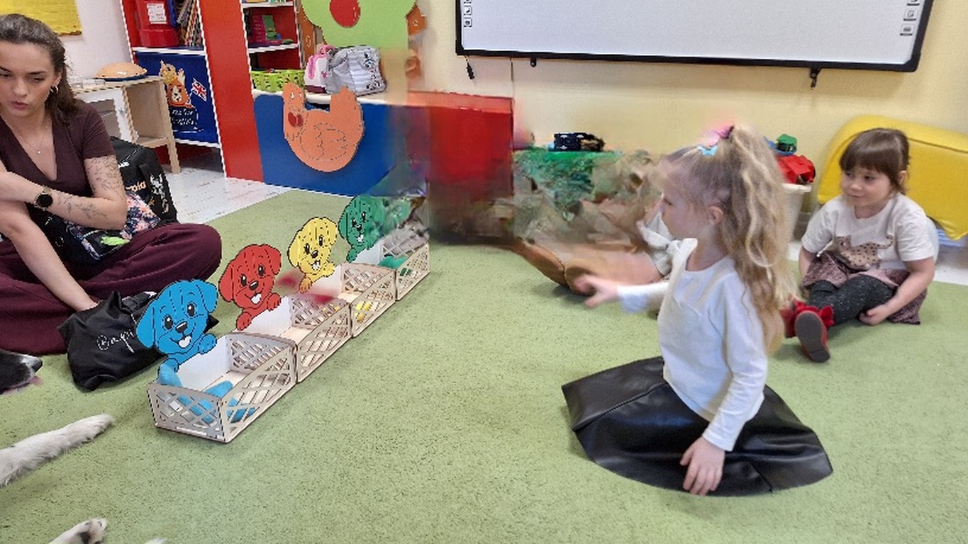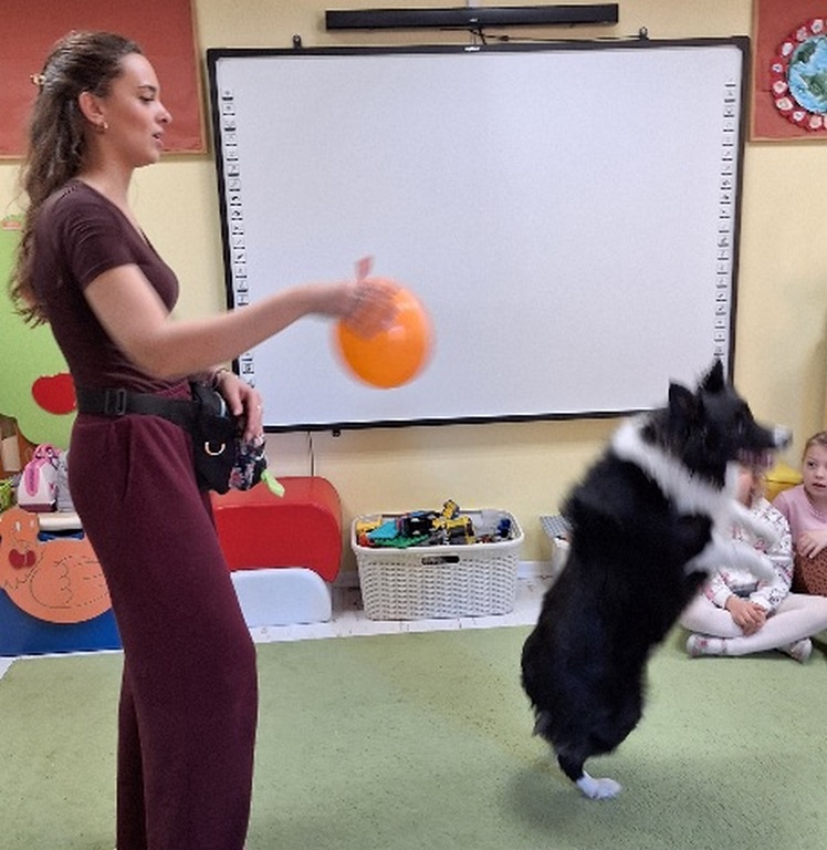 Kolejny raz Tygryski biorą udział w zajęciach z pieskiem.Coraz więcej dzieci przekonuje się do psów i chętnie bierze czynny udział we wspólnych zabawach.