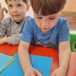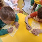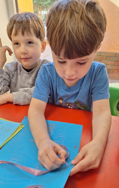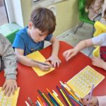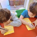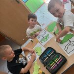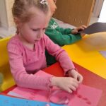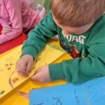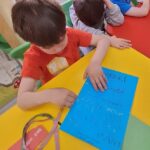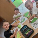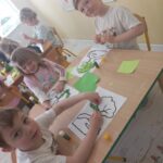 W tym tygodniu podczas zajęć sensoplastycznych dzieci za pomocą bibuły wyklejaly ptaszki , ćwicząc przy tym motorykę mała.