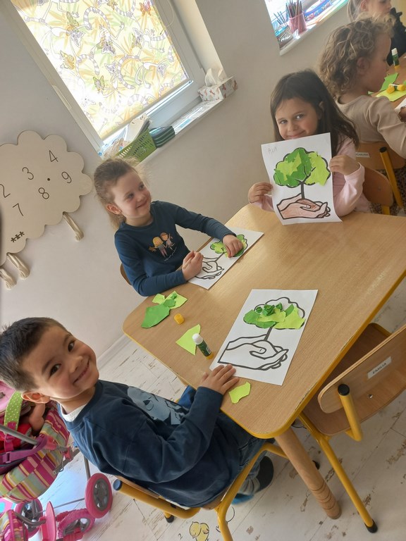 Dzień dobry, w tym tygodniu rozmawiamy o ochronie środowiska oraz o tym jak wielkie znaczenie ma praca zaczynająca się od samych siebie 😁 rozmowy były długie, pytań było wiele, sówki doskonale wiedzą jak dbać o otoczenie ☺️ wykonaliśmy piękną pracę plastyczną oraz przeszliśmy ścieżkę sensoryczną, która wywołała wiele emocji, pozytywnych emocji 💚