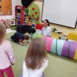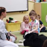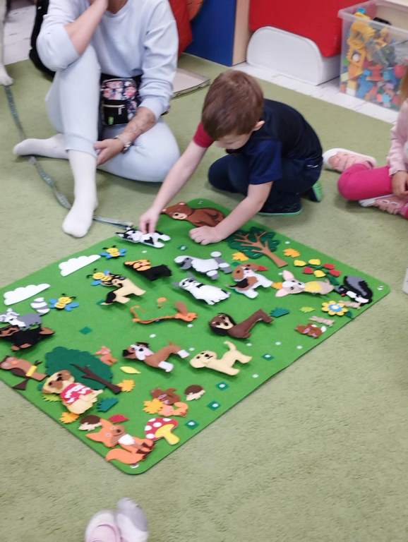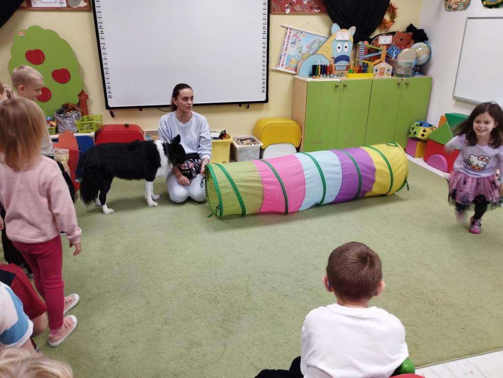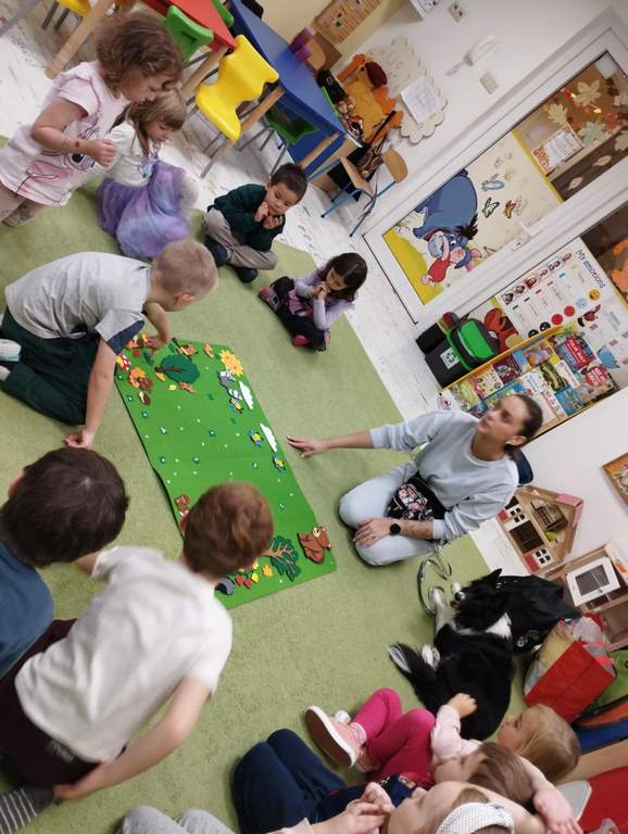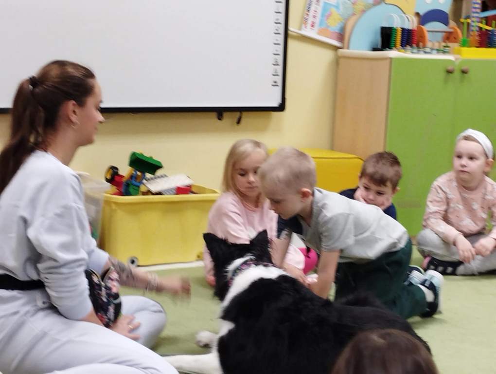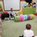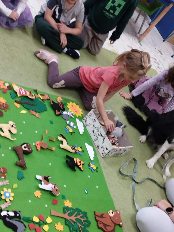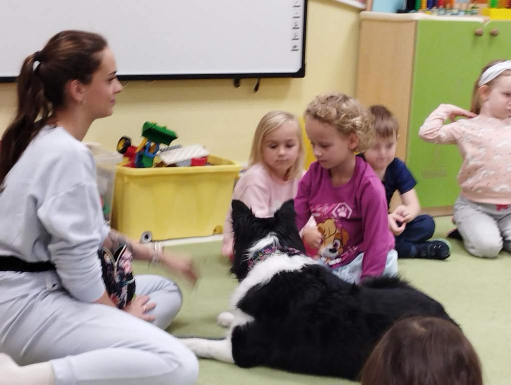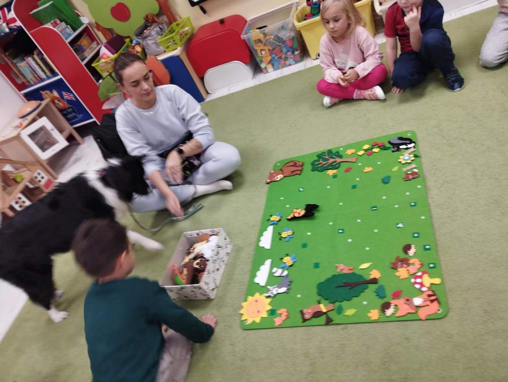 Kolejne zajęcia z naszym przyjacielem Coco ☺️ nasze spotkania to nie tylko interakcja z pieskiem …to także oswajanie się z nim, rozwiązywanie zagadek, dowiadywanie się nowych rzeczy o pieskach a także nauka delikatności w stosunku do zwierząt. Sówki uwielbiają te zajęcia 😊