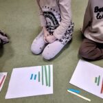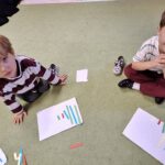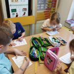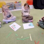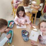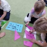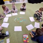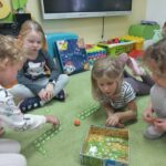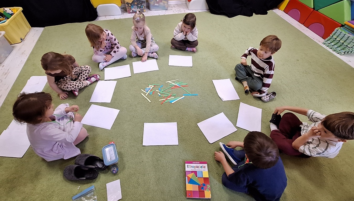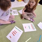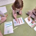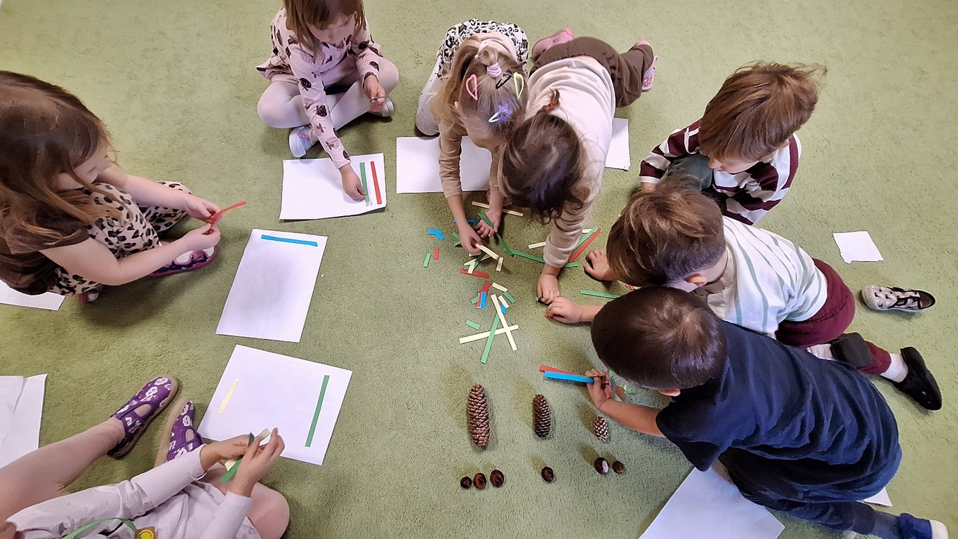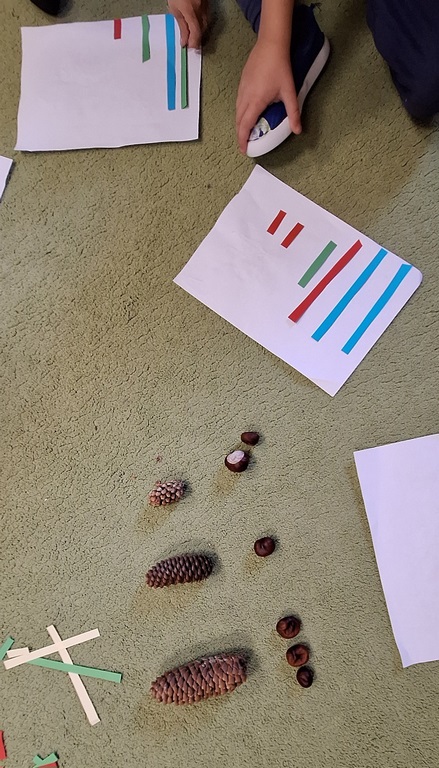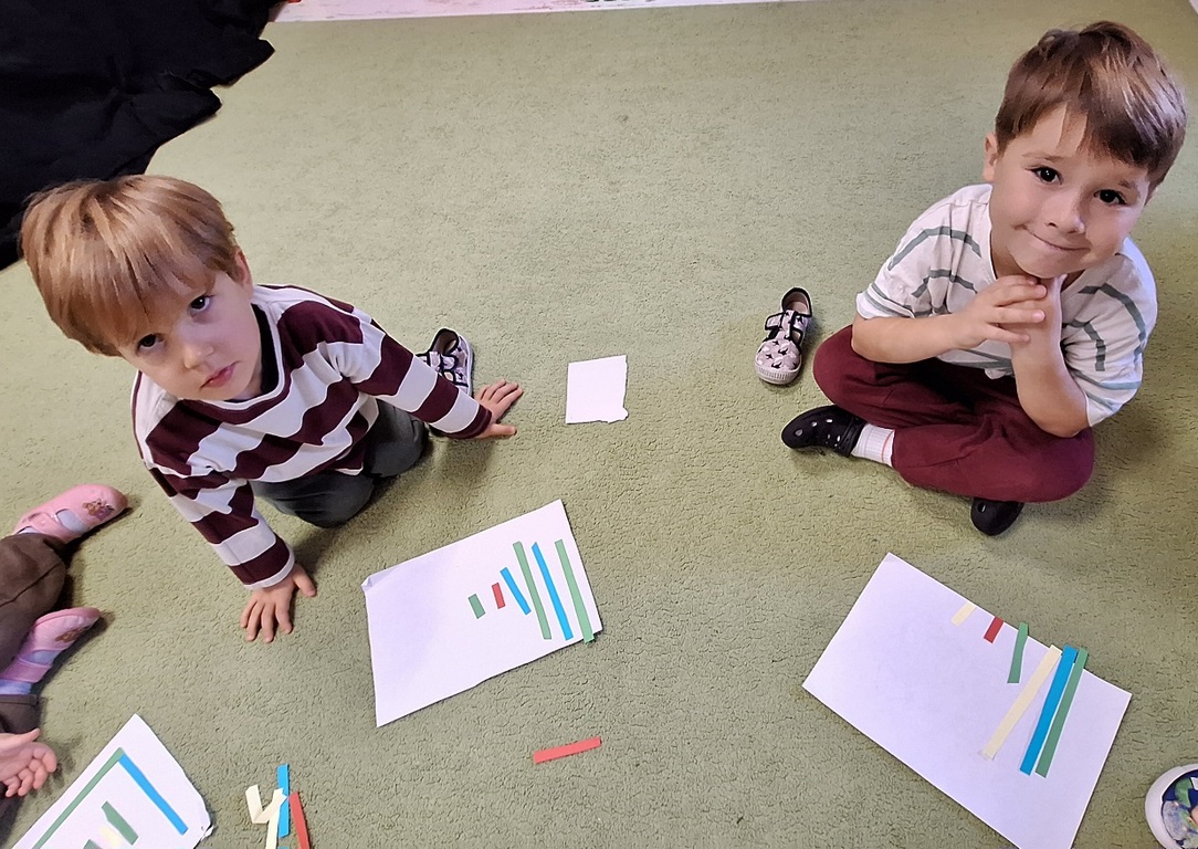 Dzieci segregowały, przeliczały i układały według poleceń nauczyciela paski według wielkości i według koloru.