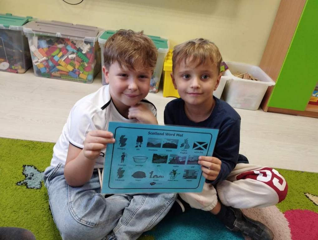 Welcome To Scotland! W tym tygodniu na zajęciach z języka angielskiego w grupie Sówek odwiedziliśmy wirtualnie piękną Szkocję. Przypomnieliśmy sobie symbole narodowe Szkocji i wskazywaliśmy Szkocję na mapie Europy, rozmawialiśmy także o symbolach kulturowych takich dudy, haggis czy Nessie. Odwiedziliśmy słynne miasta w Szkocji, zwiedziliśmy wirtualnie zamek w Edynburgu i poznaliśmy imiona szkockich władców. Zaprojektowaliśmy także szkocki tartan I przyjrzeliśmy się, jak wygląda tradycyjny szkocki kilt, duma Szkotów.Poznaliśmy także historię księżniczki Meridy oraz tradycje obchodów szkockiego święta plonów .