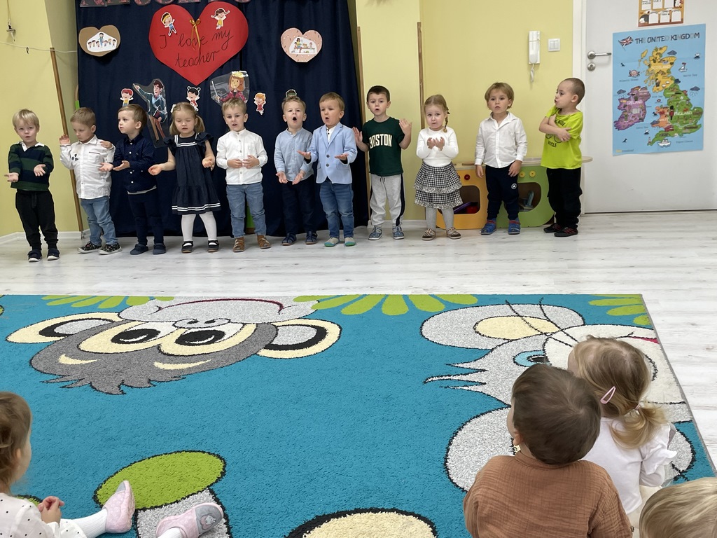 We wtorek 14 października w naszym przedszkolu, podobnie jak w całym kraju obchodziliśmy Dzień Edukacji Narodowej. Jeżyki wystąpiły przed wszystkimi ciociami, zaśpiewały po polsku I angielsku, wyrecytowały wierszyk po angielsku i odtańczyły piękny taniec. A wszystkim odwiedzającym naszą galerię życzymy miłego dnia.