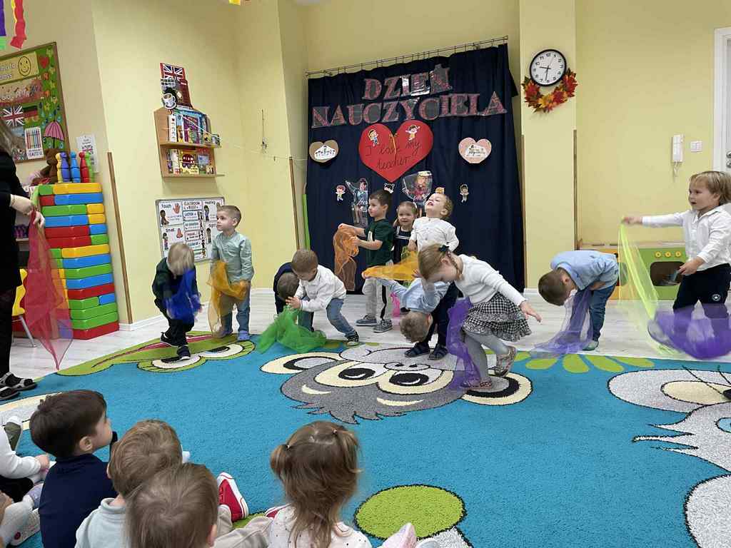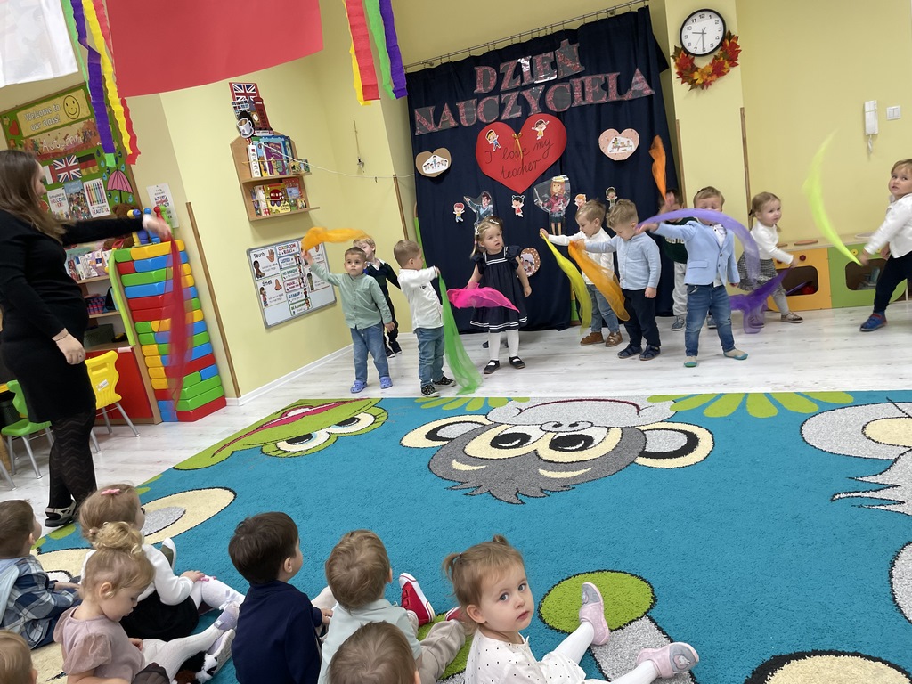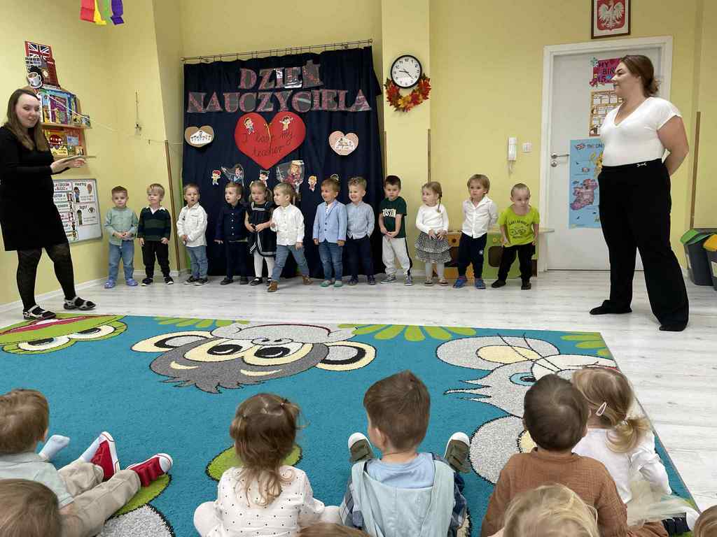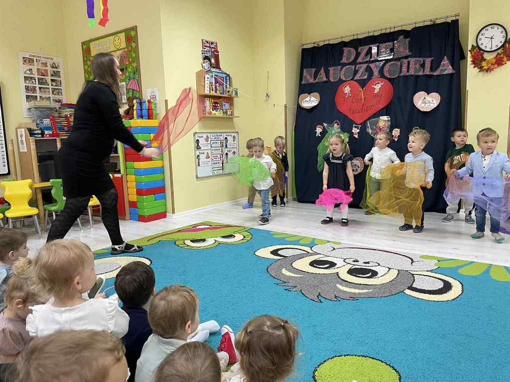 Z okazji Dnia Nauczyciela grupa starszaków przygotowała dla dzieci z żłobka oraz wszystkich nauczycieli wyjątkowy występ💃. Dzieci zachwyciły wszystkich pięknym śpiewem i tańcem. Widać było radość na twarzach zarówno dzieci, jak i pań wspólne chwile pełne uśmiechu i ciepła na długo pozostaną w pamięci.❤️
