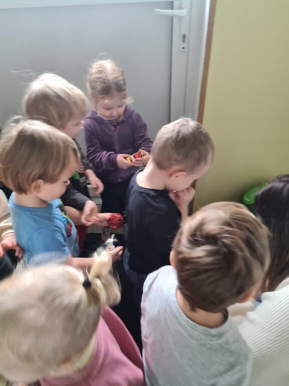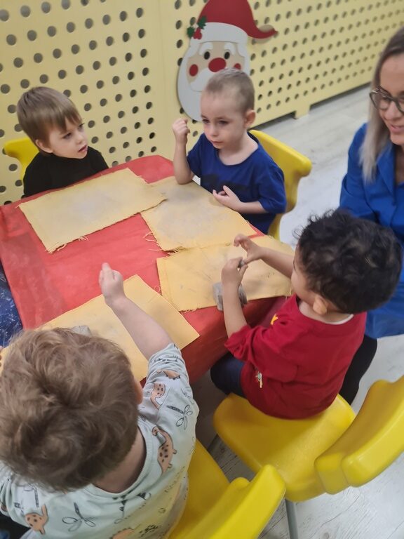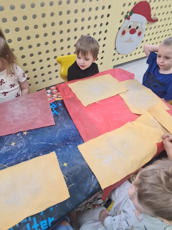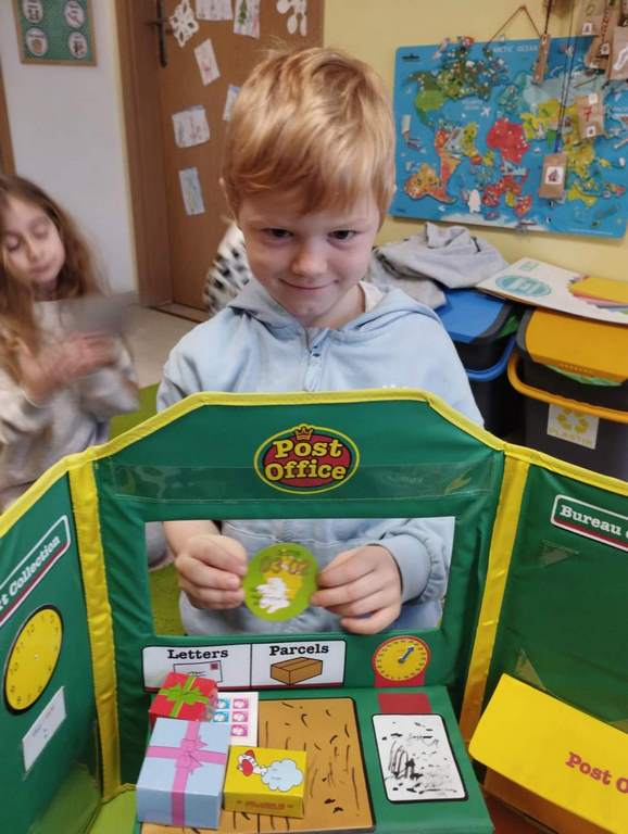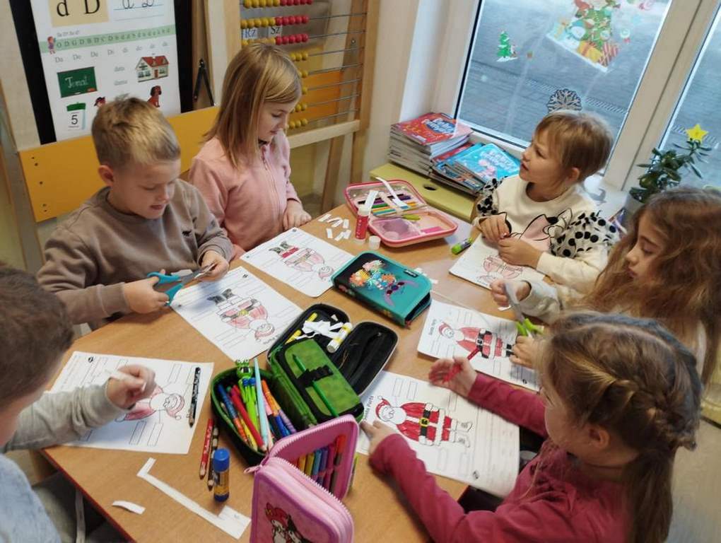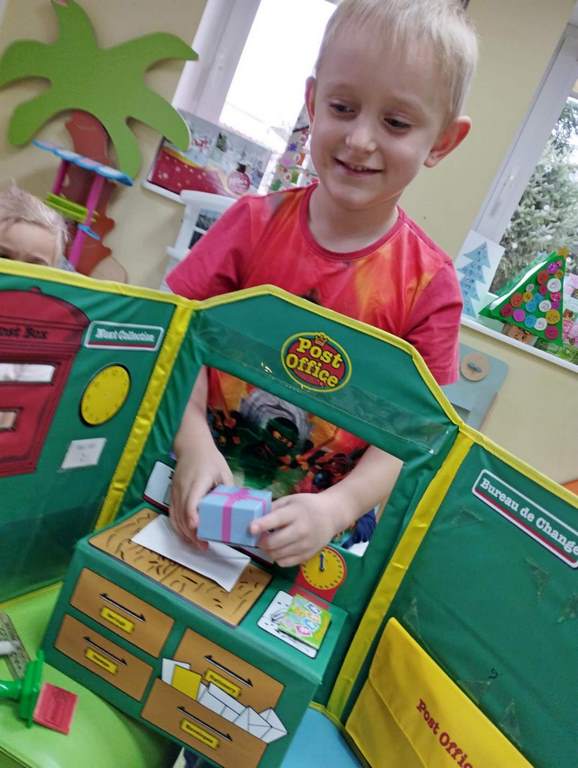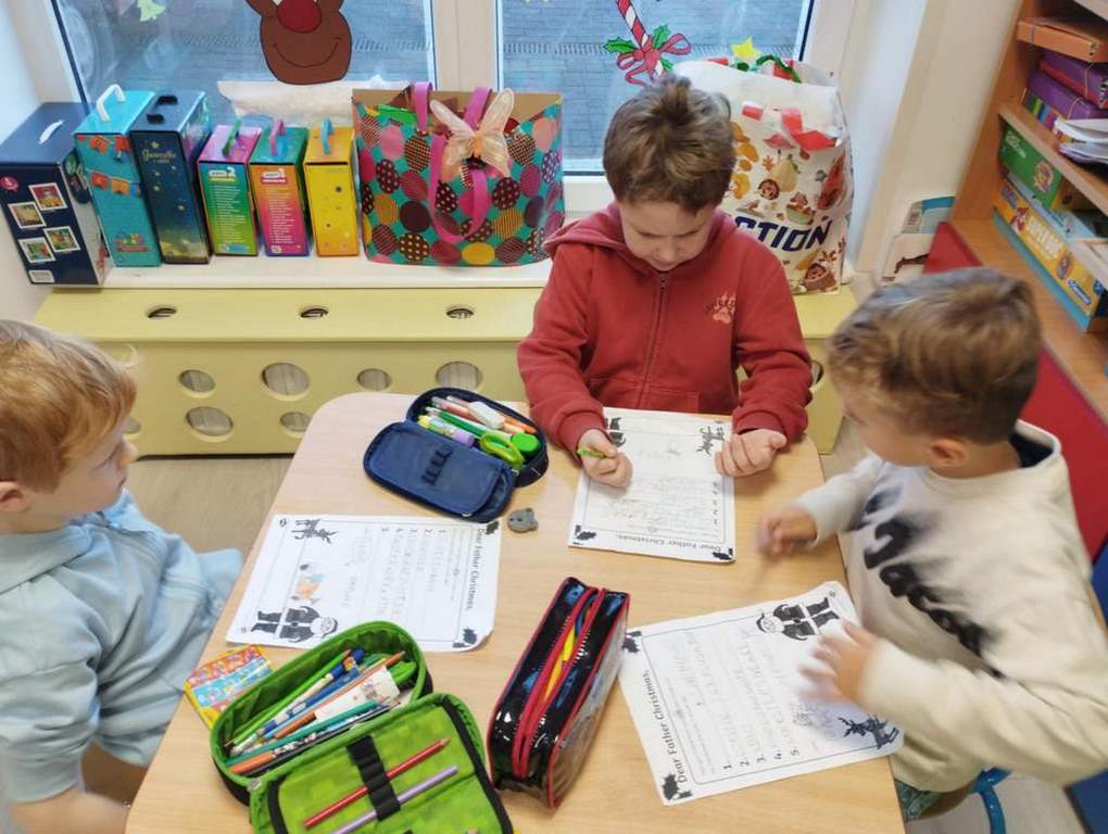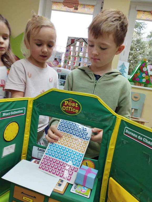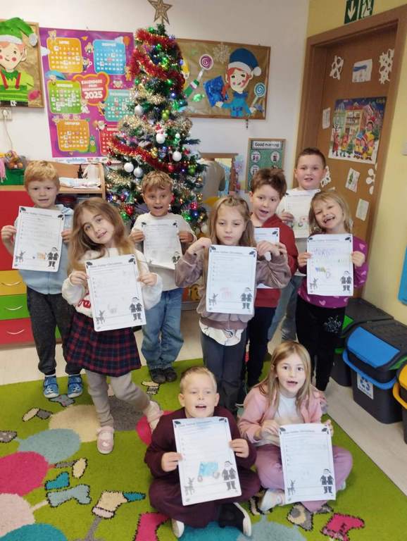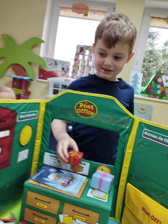 W tym tygodniu na zajęciach z języka angielskiego w grupie Pszczółek z niecierpliwością oczekiwaliśmy na wizytę szczególnego gościa, jakim jest Święty Mikołaj. Mówiliśmy o pracy listonosza, listach i pocztówkach i oglądaliśmy karty bożonarodzeniowe z różnych stron świata. Rozmawialiśmy także o wymarzonych prezentach, pisaliśmy list do Św.Mikołaja oraz czytaliśmy Mikołajowe opowieści.