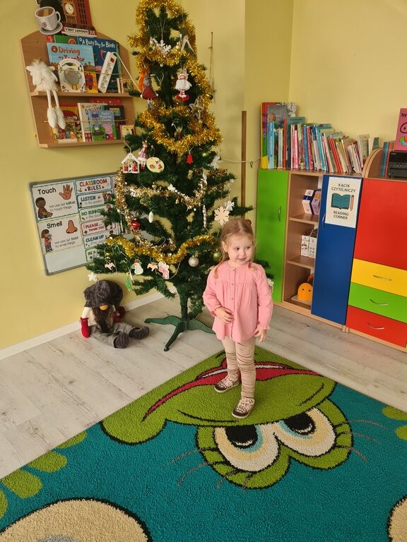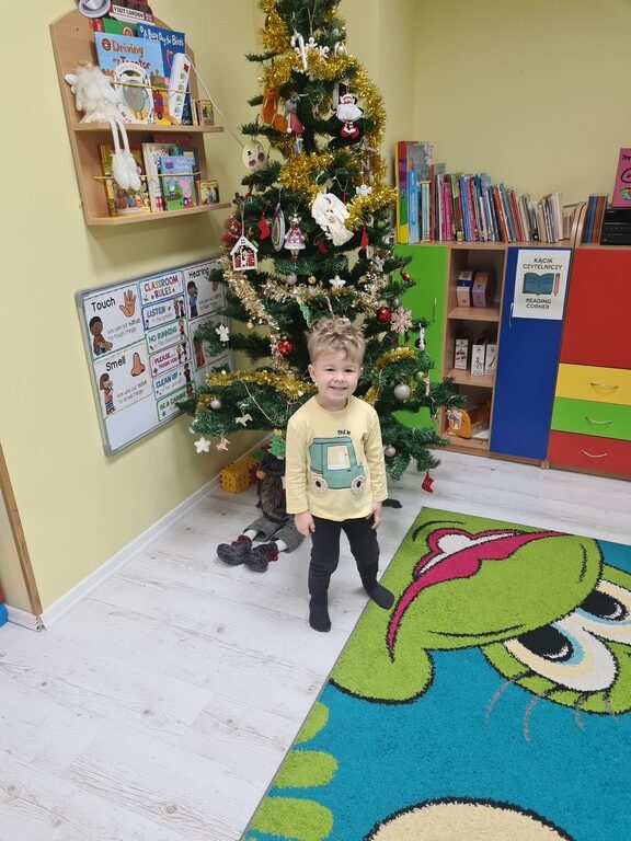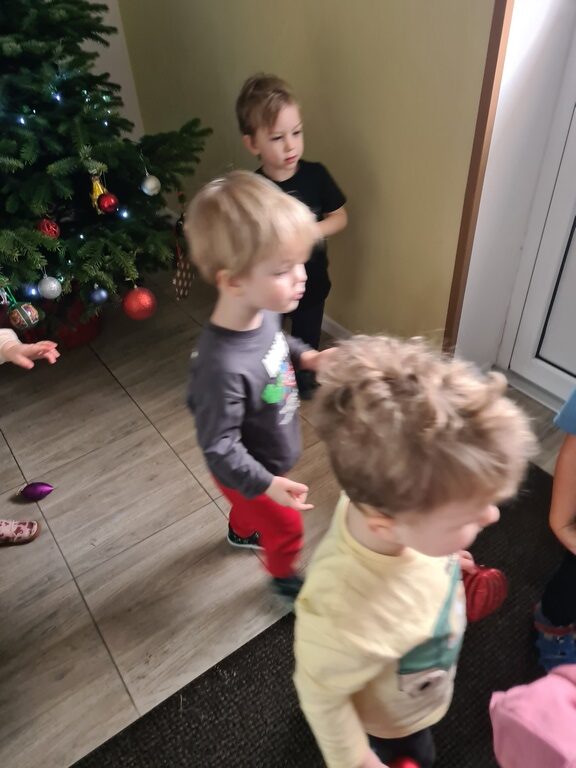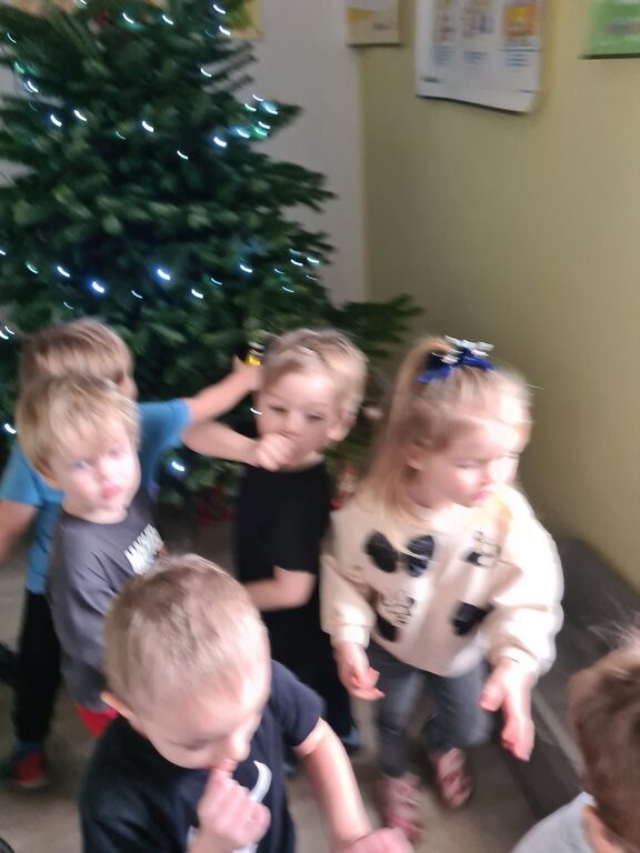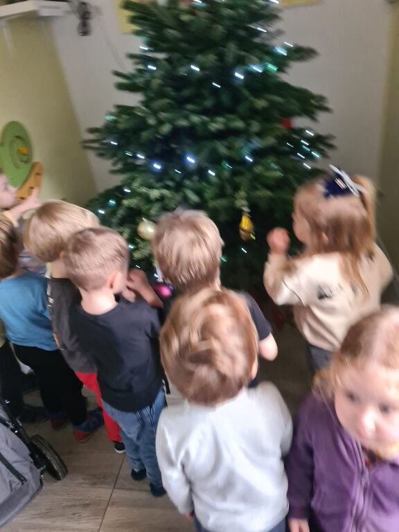 Tydzień mikołajowy w naszym przedszkolu trwa i we wtorek dzieci z grupy Jeżyki miały kolejne świąteczne zadanie. Ubrały naszą przedszkolną choinkę w wiatrołapie, która wita wszystkich wchodzących do naszej placówki zapachem lasu i mruganiem lampek. Dzieci z zadania wywiązały się wzorowo. A wszystkim odwiedzającym naszą galerię życzymy miłego dnia.