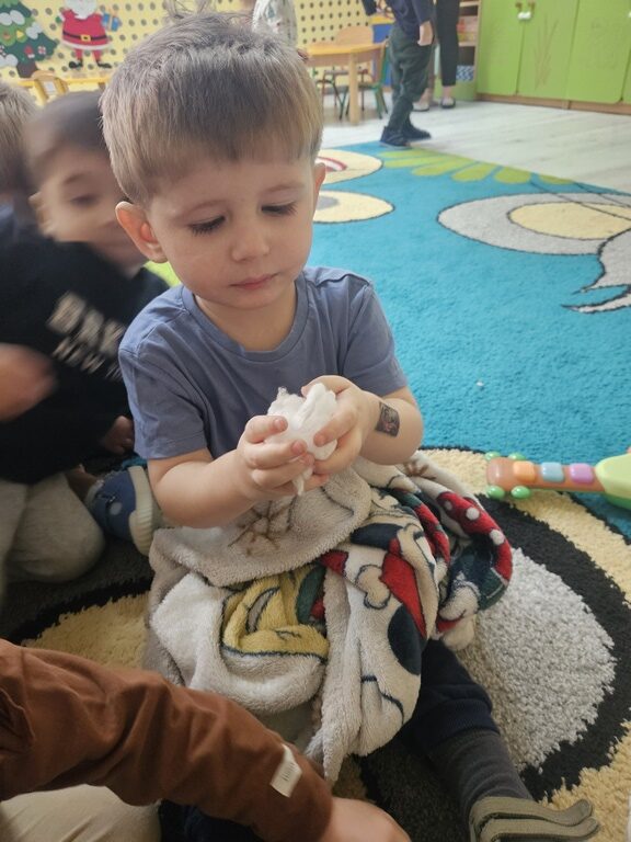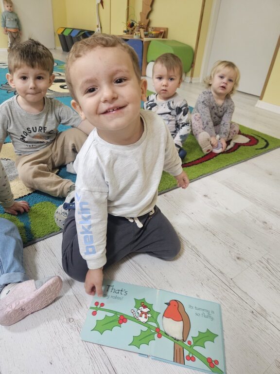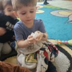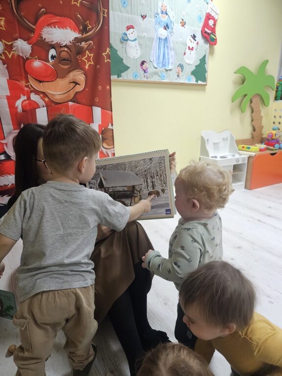 Wróbelek, gil, sikorka to ptaszki które zostają na zimę, sarenka, dzik i zajączek są dokarmiane przez leśników. Taki temat maluszki poznały w tym tygodniu na  zajęciach. Żłobiaczki z zaineresowaniem słuchały opowieści cioci i chętnie pokazywały zwierzęta na obrazkach.