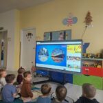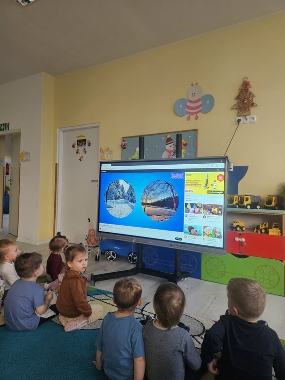 Trzmiele poznały za pomocą tablicy interaktywnej pierwsze oznaki zimy,dowiedziały się jak wygląda śnieg,co można robić zimą i jak lepić z rodzicami bałwana. Zajęcia bardzo zintegrowały grupę.