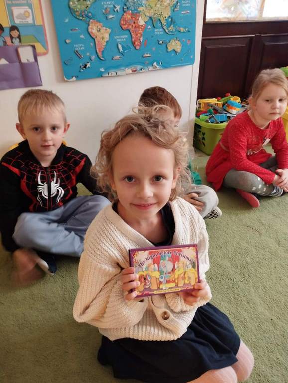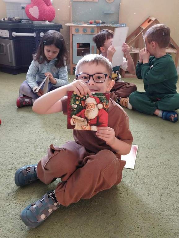 W tym tygodniu na zajęciach z języka angielskiego w grupie Sówek z niecierpliwością oczekiwaliśmy na wizytę szczególnego gościa, jakim jest Święty Mikołaj. Mówiliśmy o pracy listonosza, listach i pocztówkach i oglądaliśmy karty bożonarodzeniowe z różnych stron świata. Rozmawialiśmy także o wymarzonych prezentach, pisaliśmy list do Św.Mikołaja oraz czytaliśmy Mikołajowe opowieści.