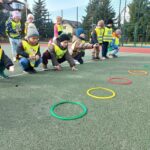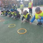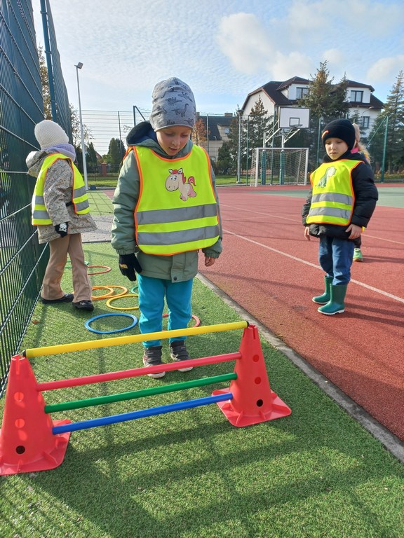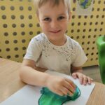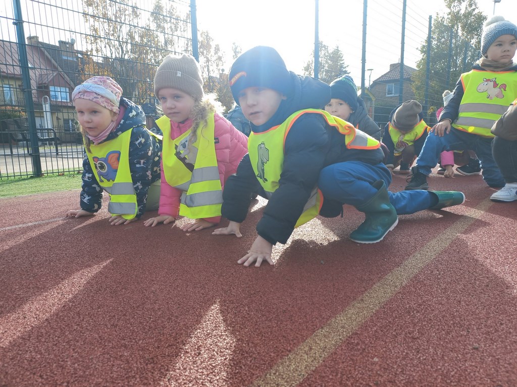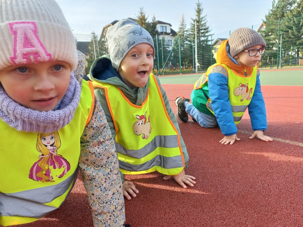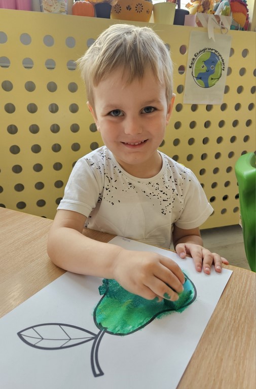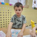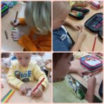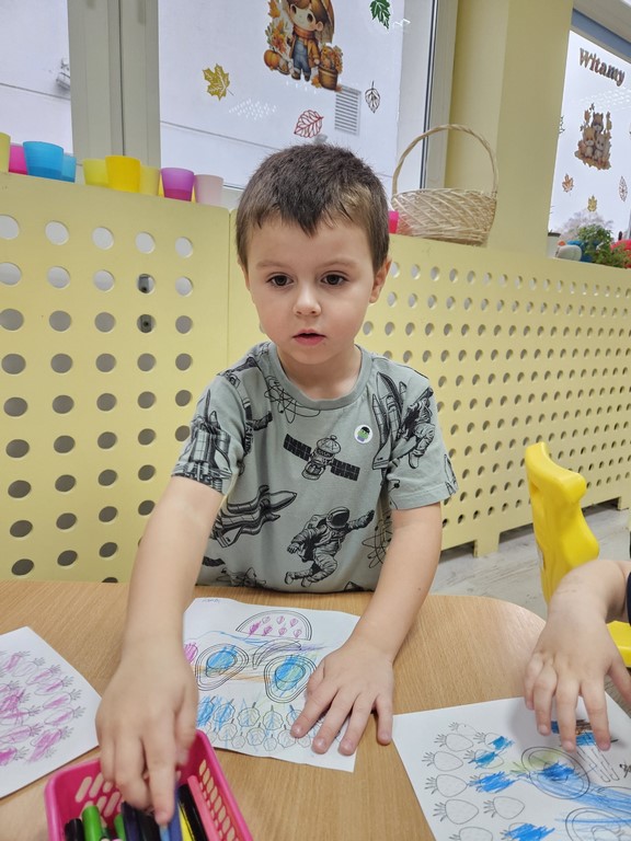 Dzieci rysowały kreski- krople zgodnie z wyznaczonym kierunkiem. Następnie każdy Tygrysek pokolorował według swojego pomysłu płaszczyk Tupa.
