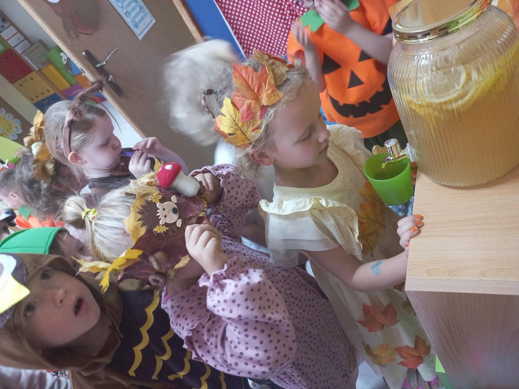 W poniedziałek 27.10.2025 odbyły sie wielki Jesienny Bal. Wszystkie przedszkolaki bawiły sie wspólnie, wcześniej prezentując swoje stroje i wykonane dynie na konkurs . Zabawa była przednia