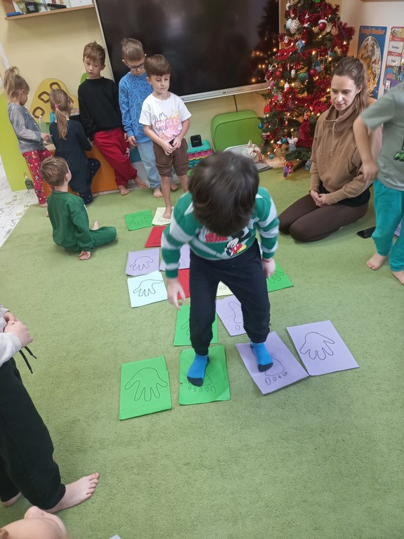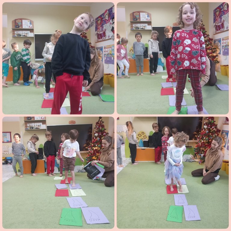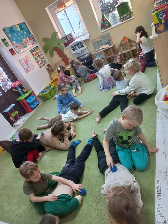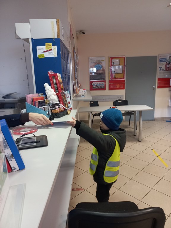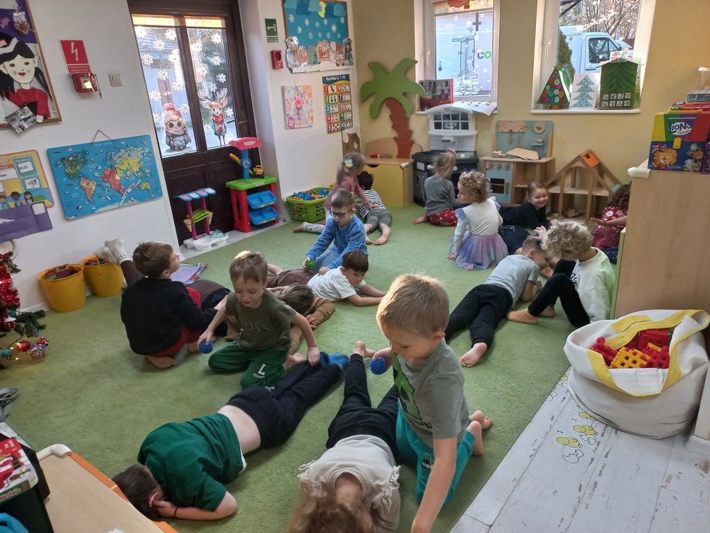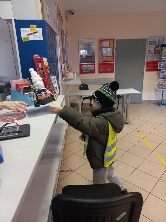 Dzień dobry, w ostatnim czasie dzieci przygotowały pocztówki wraz z małą niespodzianką 😉 wspólnie poszliśmy na pocztę zapoznając się przy okazji z zawodem listonosza oraz pracownika obsługi klienta. Dzieci same wręczyły swoje listy Pani używając zwrotów grzecznościowych 😊 teraz zostaje poczekać na doręczenie…. wykonaliśmy także piękne choinki przy pomocy brokatu i cekinów. Za nami Joga. Masażyki i ćwiczenia chyba nigdy nie znudzą się dzieciom 😁