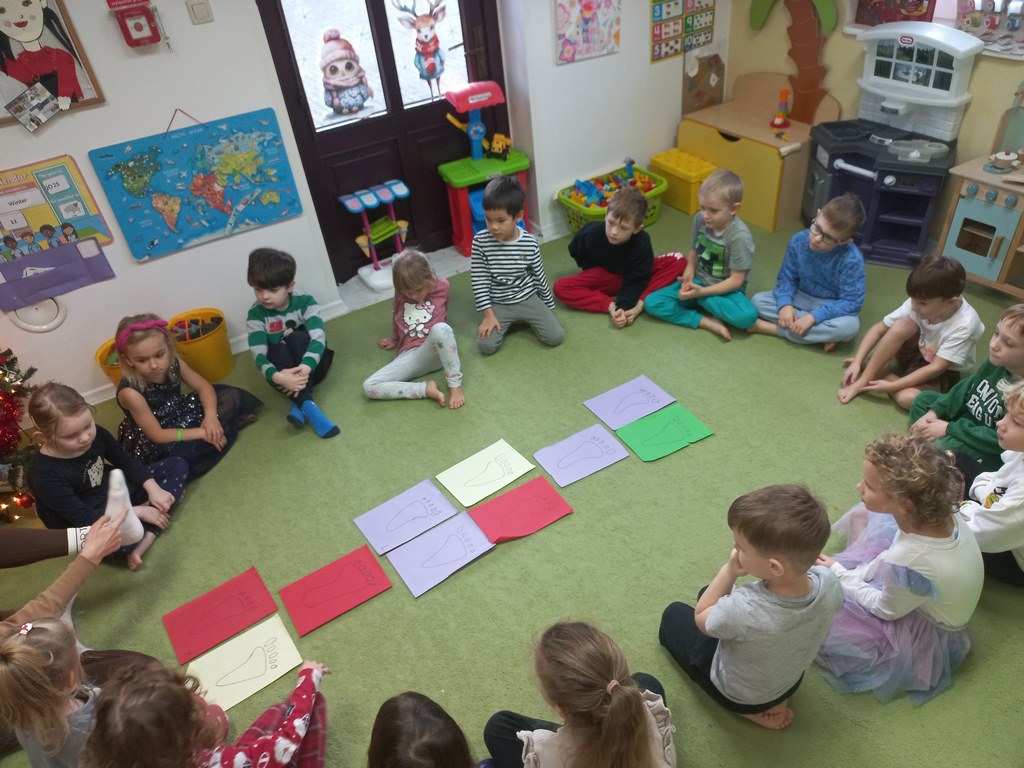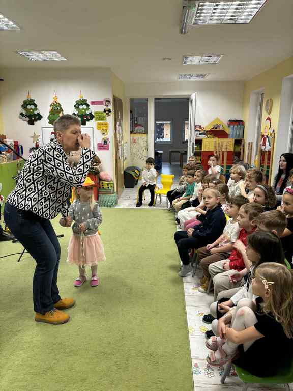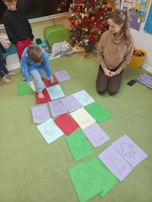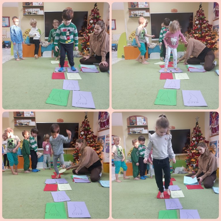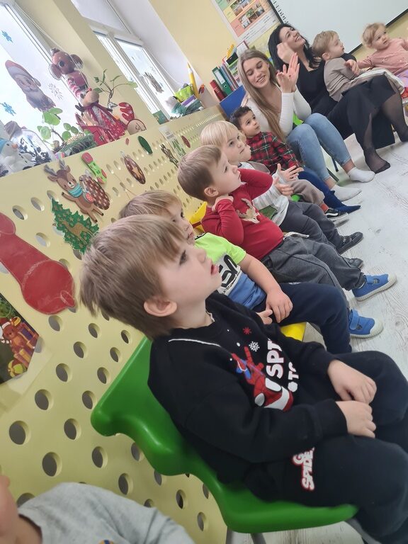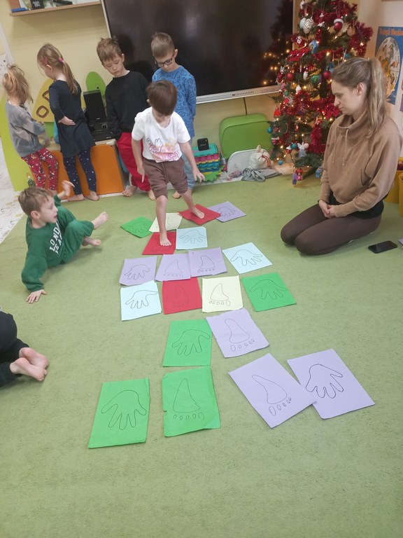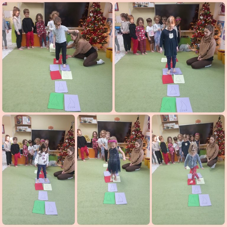 Dzień dobry, w ostatnim czasie dzieci przygotowały pocztówki wraz z małą niespodzianką 😉 wspólnie poszliśmy na pocztę zapoznając się przy okazji z zawodem listonosza oraz pracownika obsługi klienta. Dzieci same wręczyły swoje listy Pani używając zwrotów grzecznościowych 😊 teraz zostaje poczekać na doręczenie…. wykonaliśmy także piękne choinki przy pomocy brokatu i cekinów. Za nami Joga. Masażyki i ćwiczenia chyba nigdy nie znudzą się dzieciom 😁